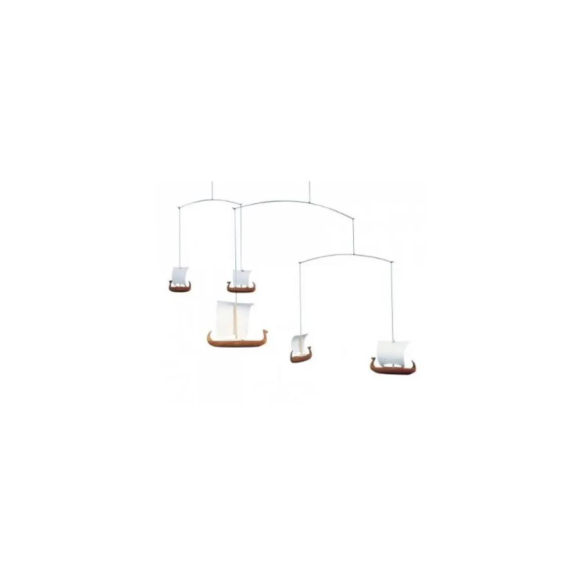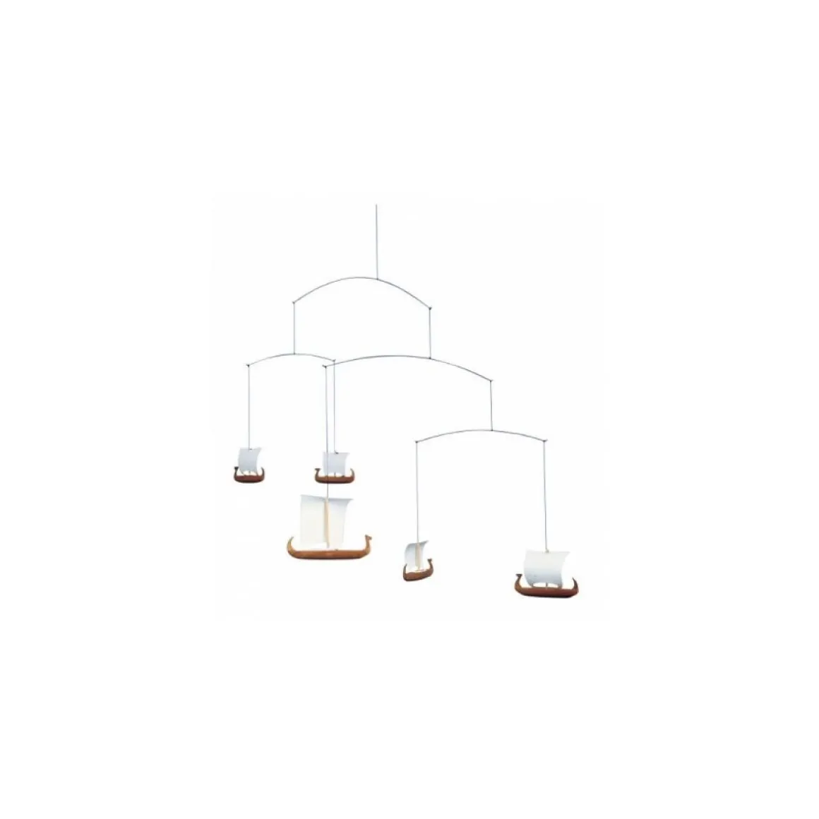 Mobile Flensted à suspendre à l’aide du fil à dérouler et à cooncer avec le domino fourni. modèle avec 5 bateaux vikings. Idéal pour offrir ou pour agrémenter votre intérieur. Prêt à suspendre.