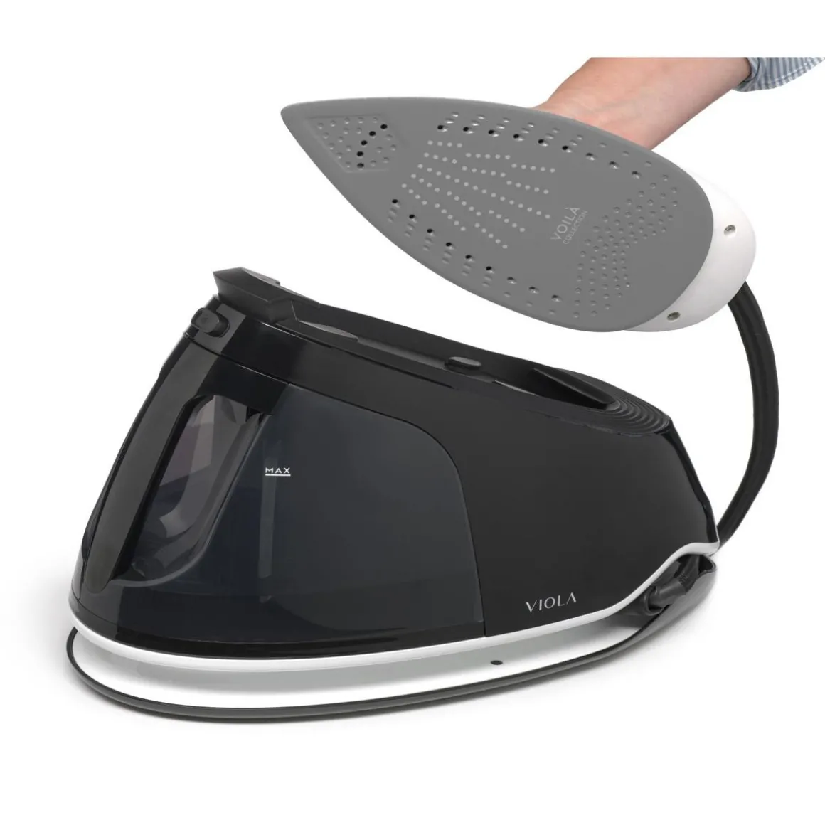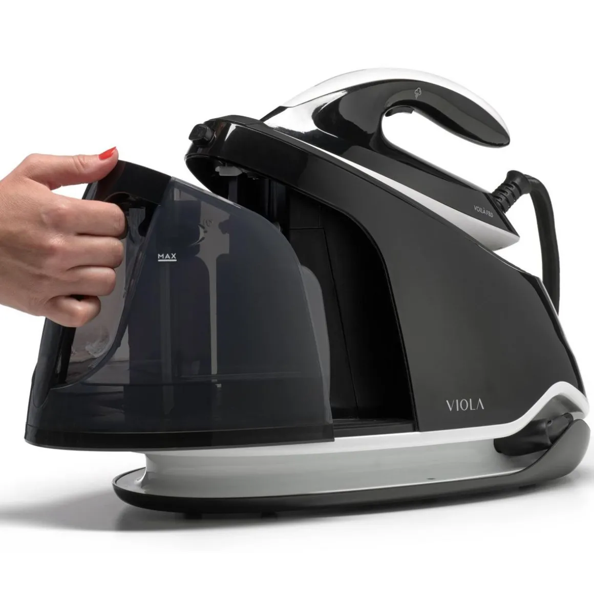 Voilà F.8.0 est le nouveau fer à repasser innovant avec une chaudière haute pression en acier inoxydable (8 BAR) à charge continue de VIOLA. L’autonomie illimitée qui vous permet de repasser sans interruptions gênantes. Un fer à repasser fiable, puissant et intelligent, conçu pour durer dans le temps. Voilà est également équipé d’un réservoir amovible de 1,5 litre qui peut être rempli à tout moment pour un repassage ininterrompu et pratique