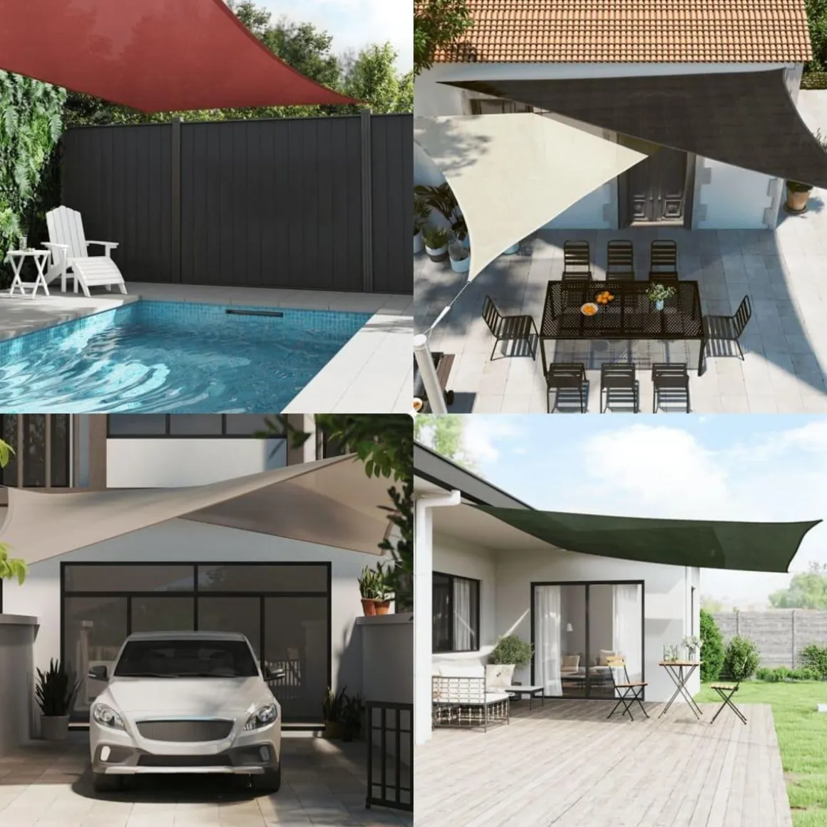 La voile solaire, faite de 100 % PEHD (polyethylene haute densite), vous protege de la lumiere directe du soleil, permet suffisamment de vent et est permeable a l’eau. Le PEHD est specialement traite, donc il est resistant aux moisissures et aux UV. Le parasol est facile a assembler avec les attaches en acier inoxydable a chaque coin et les cordes incluses.
