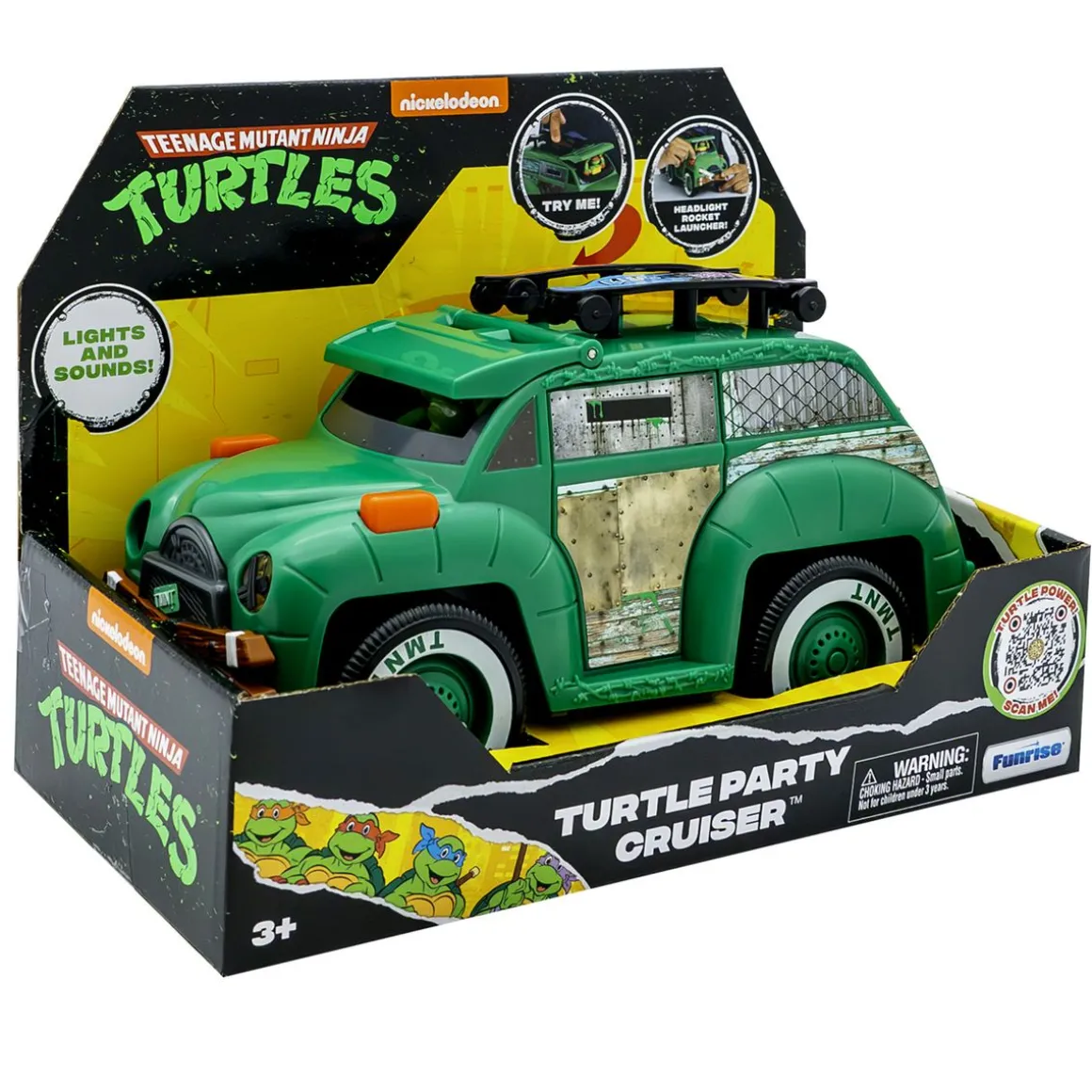 La « Turtle Party Cruiser » est équipée de roues libres et de multiples effets sonores et lumineux, enrichissant chaque mission de sauvetage ou confrontation avec les méchants. Rejoignez les Tortues Ninja dans leur lutte contre le mal avec la Voiture Combat Transformable, Cowabunga !