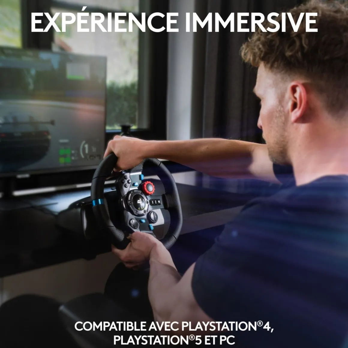 Driving Force G29 est le matériel de simulation de course ultime, avec retour de force réaliste, engrenages hélicoïdaux et pédales à sensation, conçu exclusivement pour les nouveaux jeux PlayStation®5, PlayStation®4 et PC.