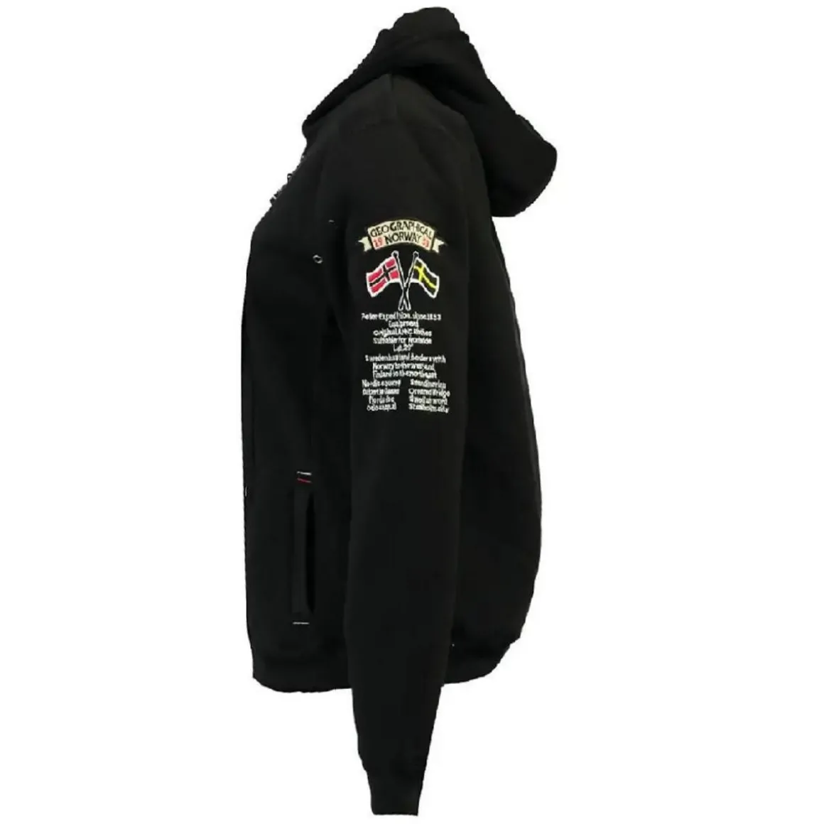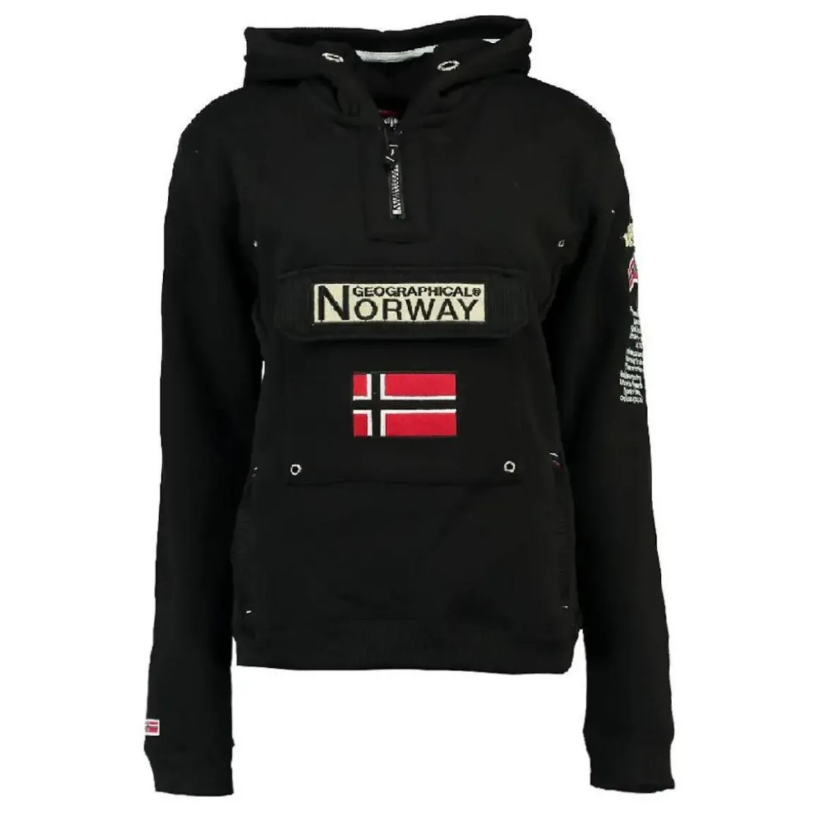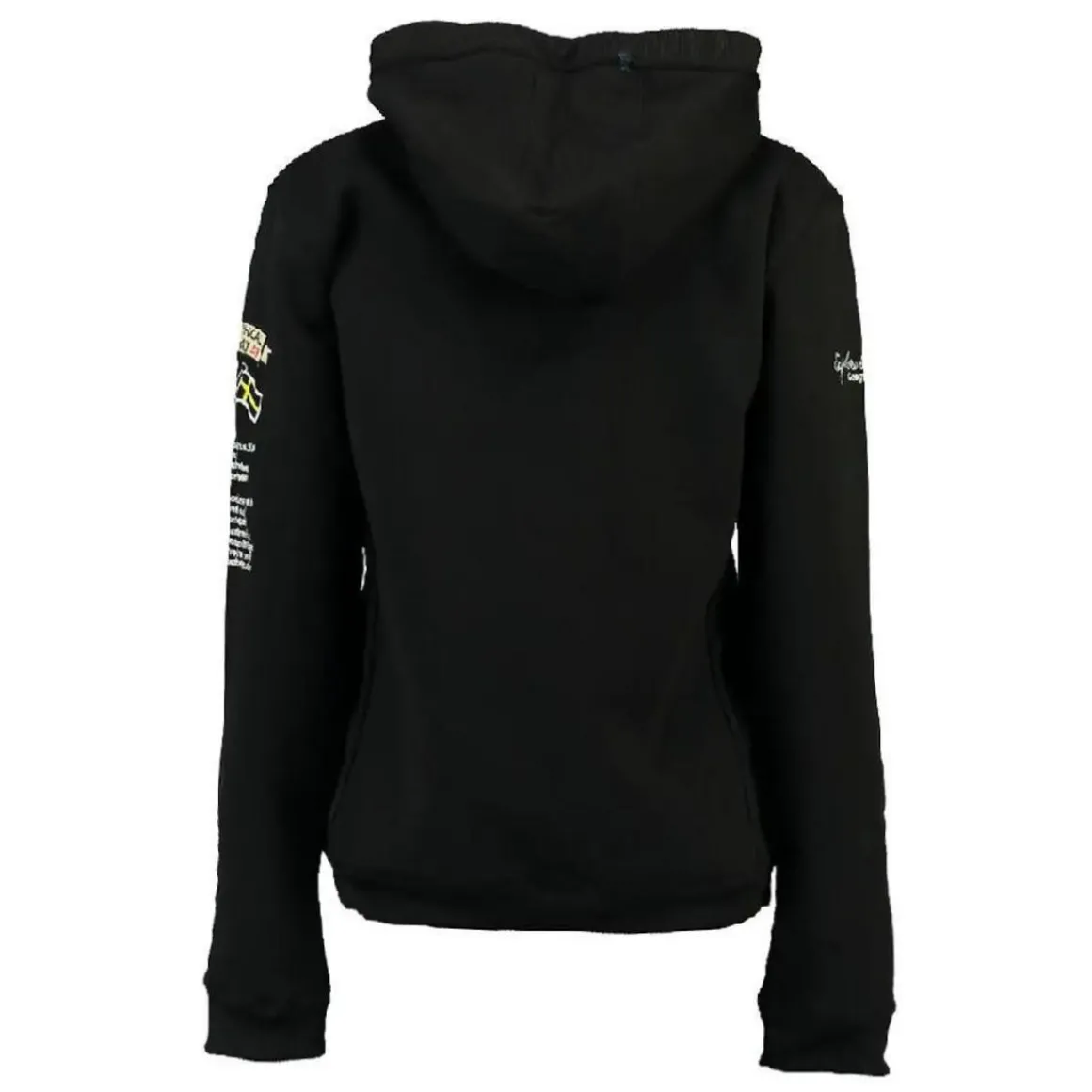 Sweat zippé femme de la marque Geographical Norway1/4 ZipCapuchePoche kangourouDrapeau et broderies Coloris : NoirComposition : 65% coton , 35% polyester