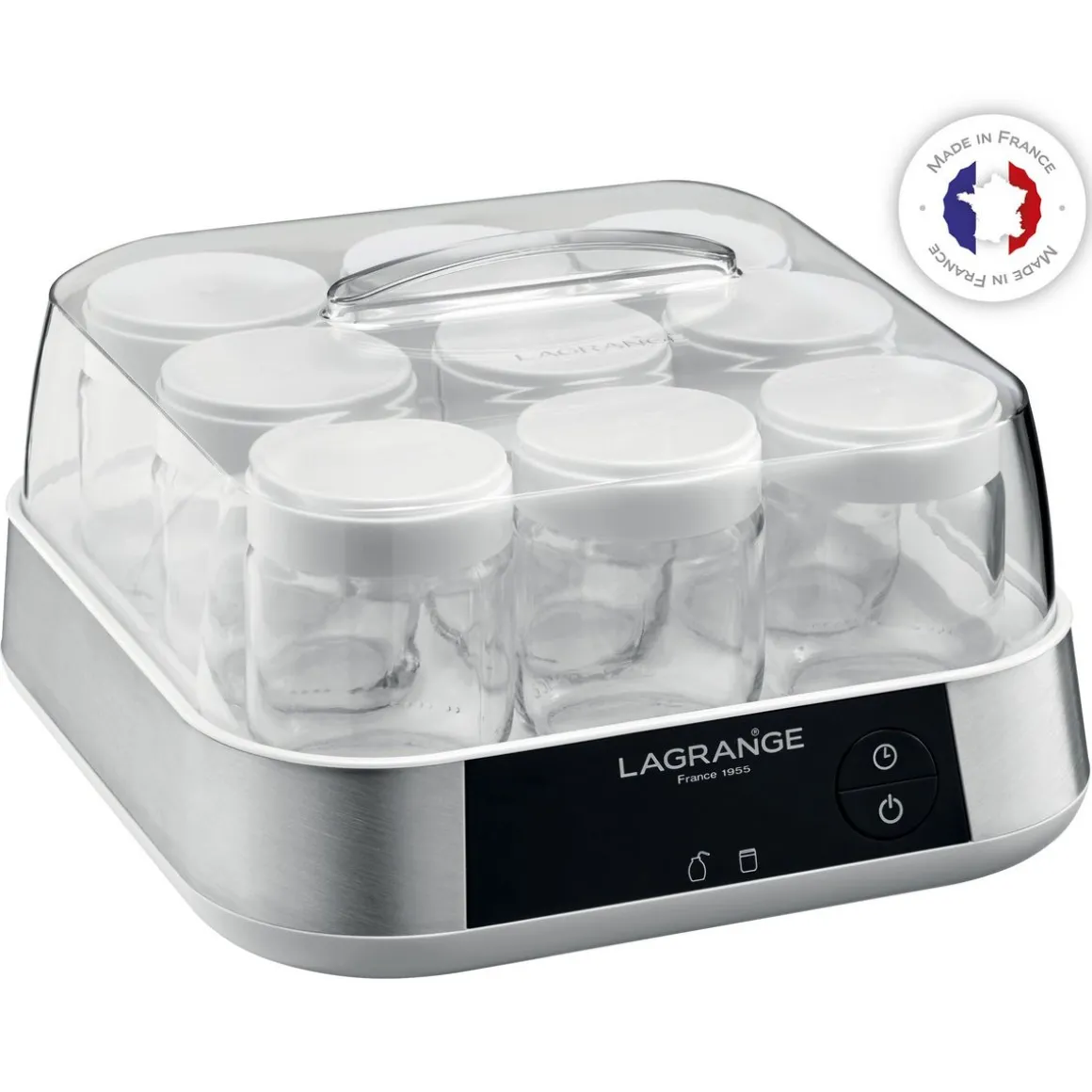 La yaourtière Lagrange 459001 est un appareil électroménager conçu pour la préparation de yaourts faits maison. Elle est transparente et possède une puissance de 18 watts. Elle est livrée avec 9 pots en verre avec couvercles empilables, chacun ayant une capacité de 185 g. L’appareil est programmable jusqu’à 15 heures et dispose d’un arrêt automatique pour une utilisation pratique et sans souci. L’écran électronique permet de régler facilement le temps de préparation et de surveiller la progression de la cuisson.