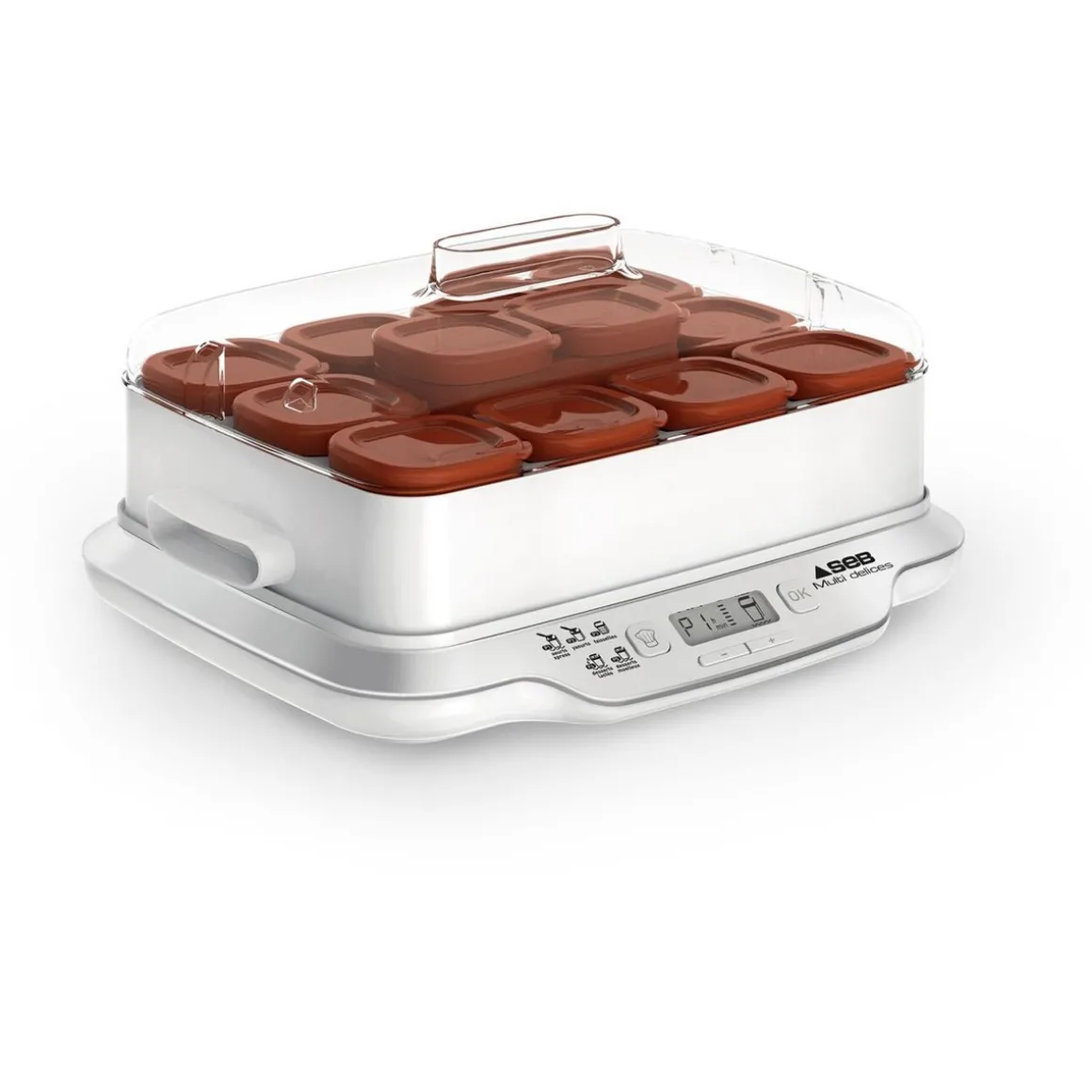La yaourtière SEB Multi delices express vous offre des résultats exceptionnels en un rien de temps et met une variété infinie de desserts à votre portée. Ses cinq programmes vous permettront de réaliser des desserts maison savoureux et toujours réussis (yaourts, desserts lactés,fromages blancs et desserts moelleux.). Le mode yaourts express 4 heures peut même diviser par deux le temps nécessaire avant la dégustation