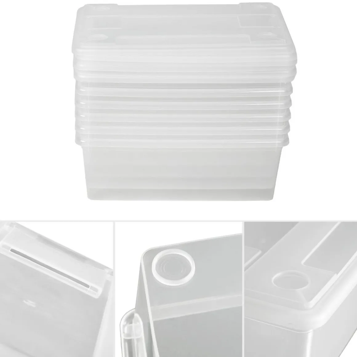 - 12 Boîtes universelles en plastique avec des trous de ventilation et couvercle.