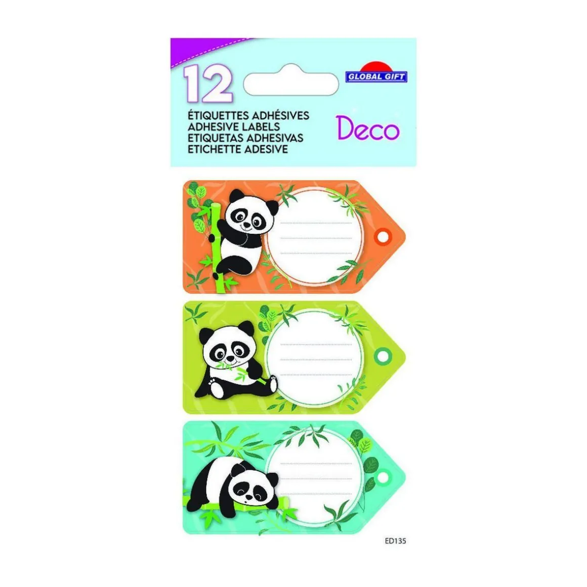 Les étiquettes adhésives de Global Gift en forme de rectangles sur le thème des pandas sont idéales pour ajouter une touche de couleur et d’originalité aux fournitures scolaires et aux paquets cadeaux. Ce paquet d’étiquettes fantaisies contient 4 feuilles de 3 étiquettes, soit 12 au total. Les étiquettes autocollantes ont aussi de multi-usages et sont personnalisables. Leur adhésion est résistante et se collent facilement où vous le souhaitez comme un alteur, un cahier, un livre, une chemise plastique ou encore un emballage cadeau. Le design des étiquettes est unique et créé en France. La rentrée des altes sera super ! Les 12 autocollants sont disposés sur 4 pages de 12 x 8 cm.