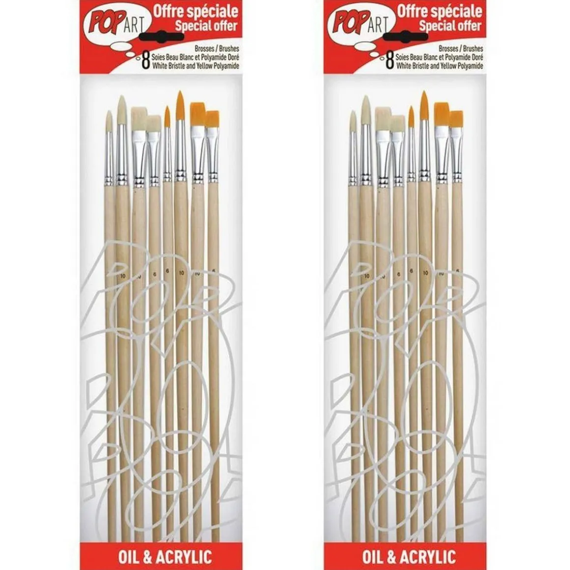 Ensemble de pinceaux en polyamide et soie à manches longs. Les pinceaux en fibre de polyamide permettent une bonne absorption des couleurs et sont durables. Ils sont idéaux pour peindre avec des couleurs diluées et réaliser des détails propres et précis. Utilisez-les avec de l’huile ou de la peinture acrylique. 8 pinceaux en soie blanche et 8 pinceaux en polyamide doré. Matières : Bois, acier, polyamide, soie. Longueur d’un pinceau : 38 cm.