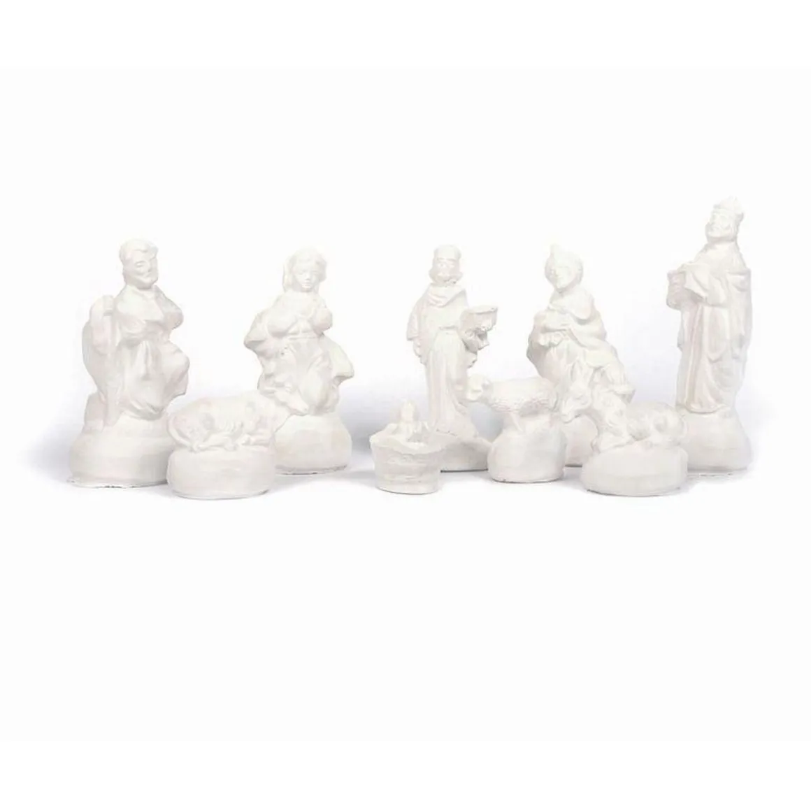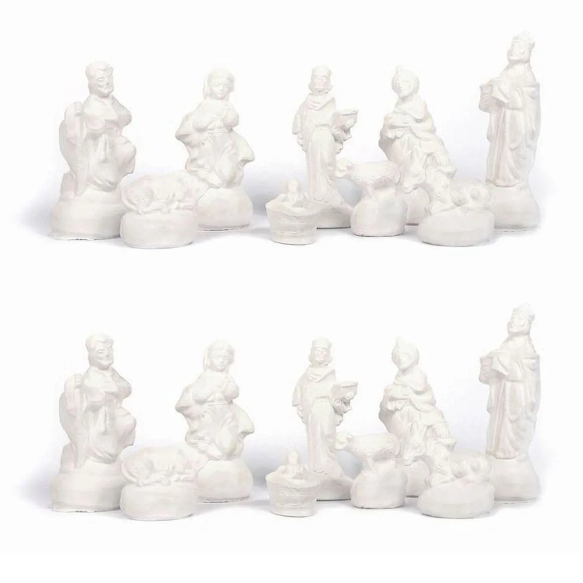 2 kits de 9 moules en silicone santons de la crèche de Noël : ces petits personnages de la tradition chrétienne représentant Marie, Joseph, le petit Jésus, un âne, un bœuf, les 3 mages et un mouton. Les figurines en plâtre réalisées sont à peindre et à décorer. Ces moules à plâtre flexibles peuvent également être utilisés pour la fabrication de bougies DIY. Notez cependant qu’il n’y a pas d’espace pour insérer une mèche. Dimension des moules en latex : 3 à 11 cm.