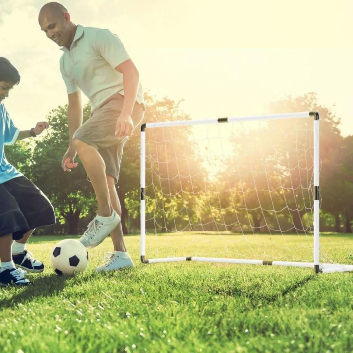 Afin de pouvoir profiter tout de suite de votre équipement, ce set de 2 cages de foot est livré avec 1 ballon et 1 pompe.