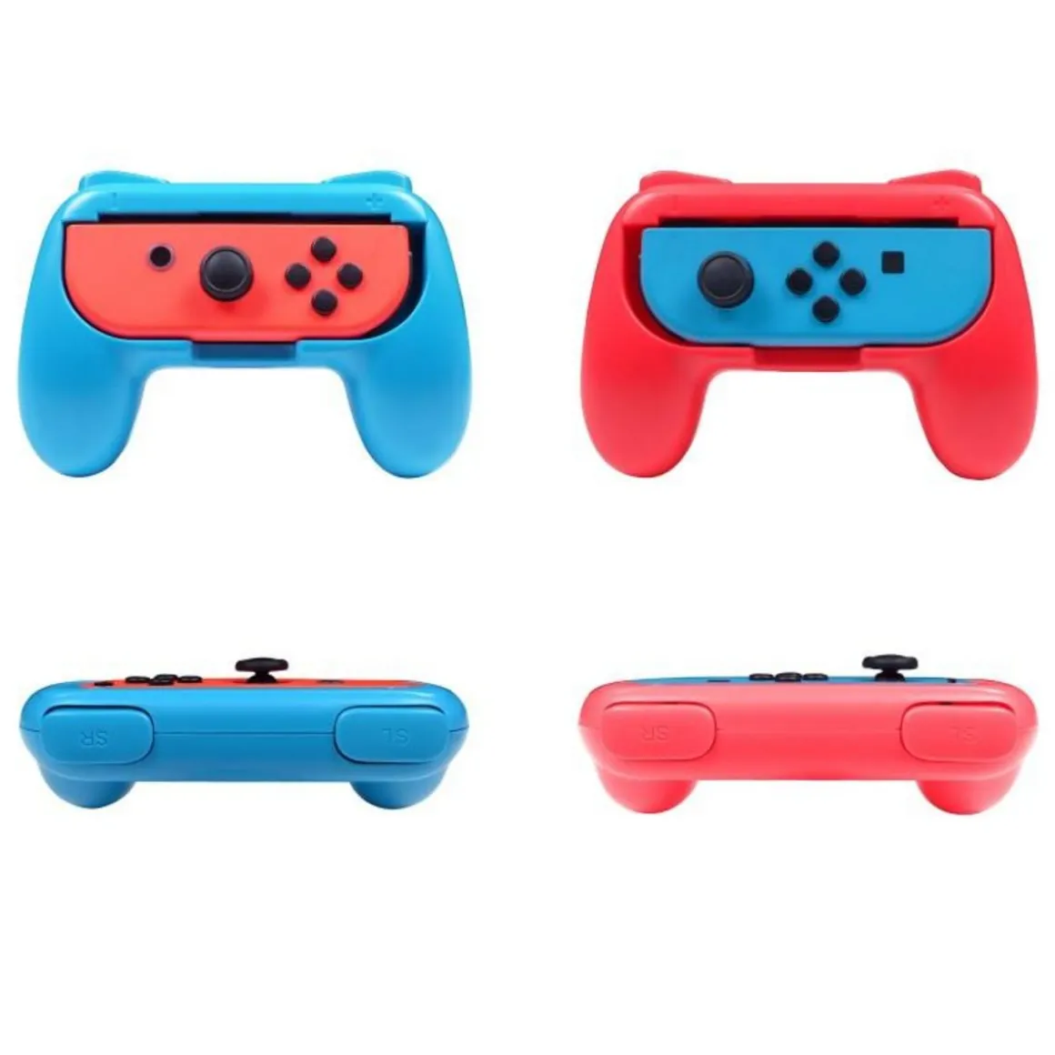 Pack de 2 poignées de jeu universelles pour Joy-Con droit et gauche. Changez en un claquement de doigt vos Joy-Cons en véritable manettes de jeu pour une meilleure prise en main. Facile à installer et désinstaller elles offriront un confort de jeu ultime pendant vos longues cessions de jeu sur Nintendo Switch. Les manettes Joy-Cons ne sont pas incluses et sont affichés dans les images à titre illustratif uniquement.