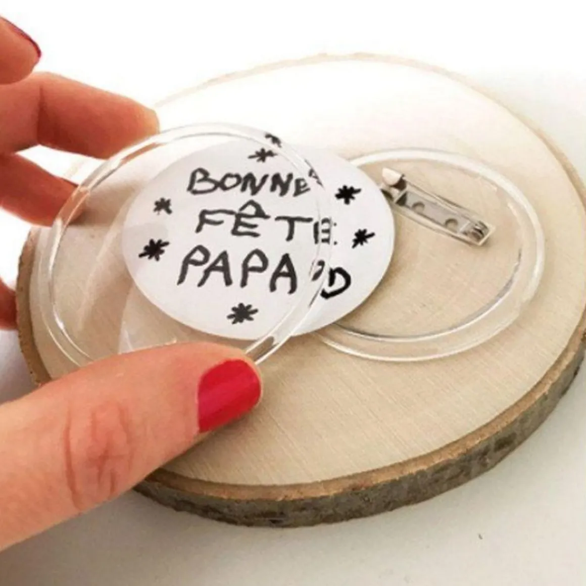 3 badges à personnaliser Ø 6 cm Chaque badge se compose d’un boîtier transparent Ø 6 cm d’une épaisseur de 0,5 cm avec couvercle à l’arrière muni d’une épingle de 2 cm. Glissez à l’intérieur du boîtier une photo, un dessin, un mot, un message. Il suffit pour cela de découper la photo, le dessin, à la dimension intérieure (soit 5,3 cm) du boîtier et l’introduire à l’emplacement dédié puis remettre le couvercle par-dessus et presser pour emboîter. Vous obtenez ainsi un badge personnalisé unique! Il suffit juste d’une paire de ciseaux (vendue séparément).