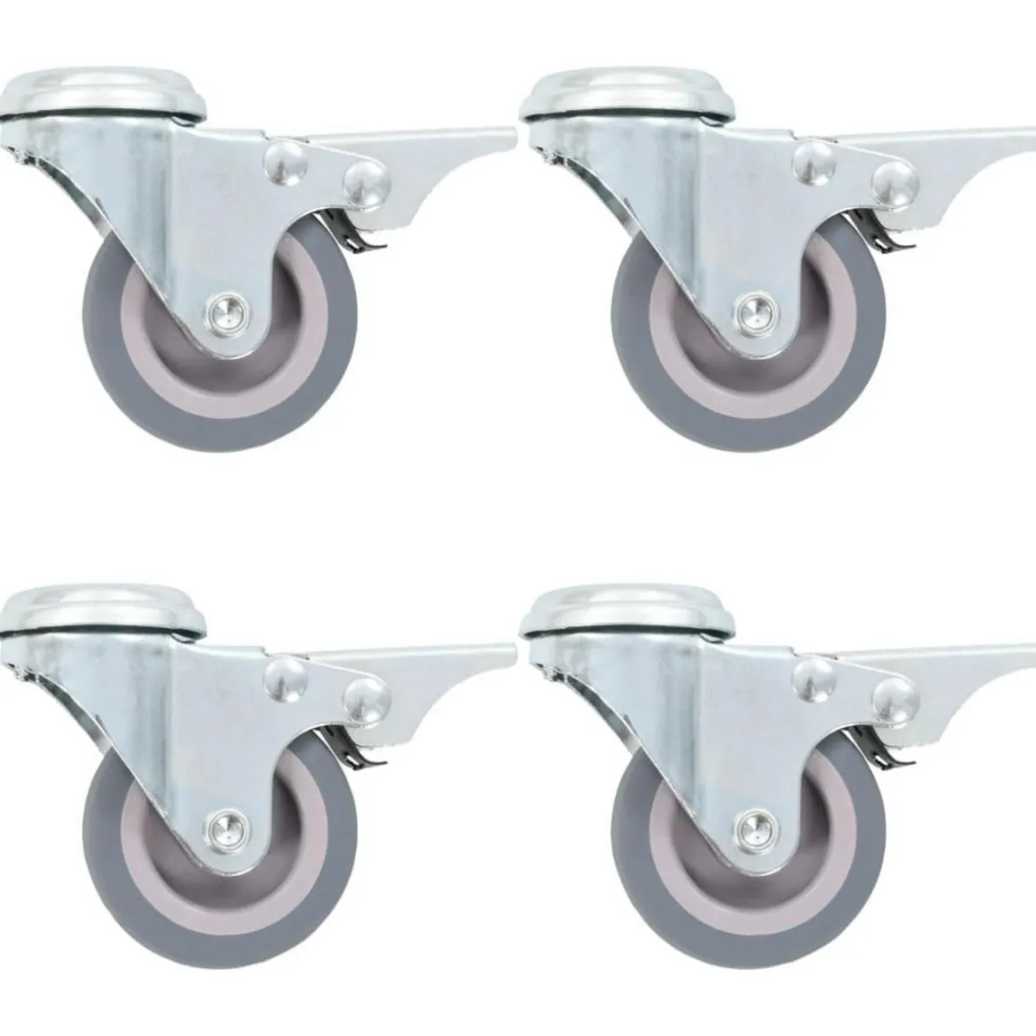 Cet ensemble de 4 roulettes pivotantes avec double frein sera l’accessoire ideal pour les petits equipements et les meubles tels que d’etabli, de chariot, de table basse, de support a plantes, de bibliotheque, de panier d’achat, etc.