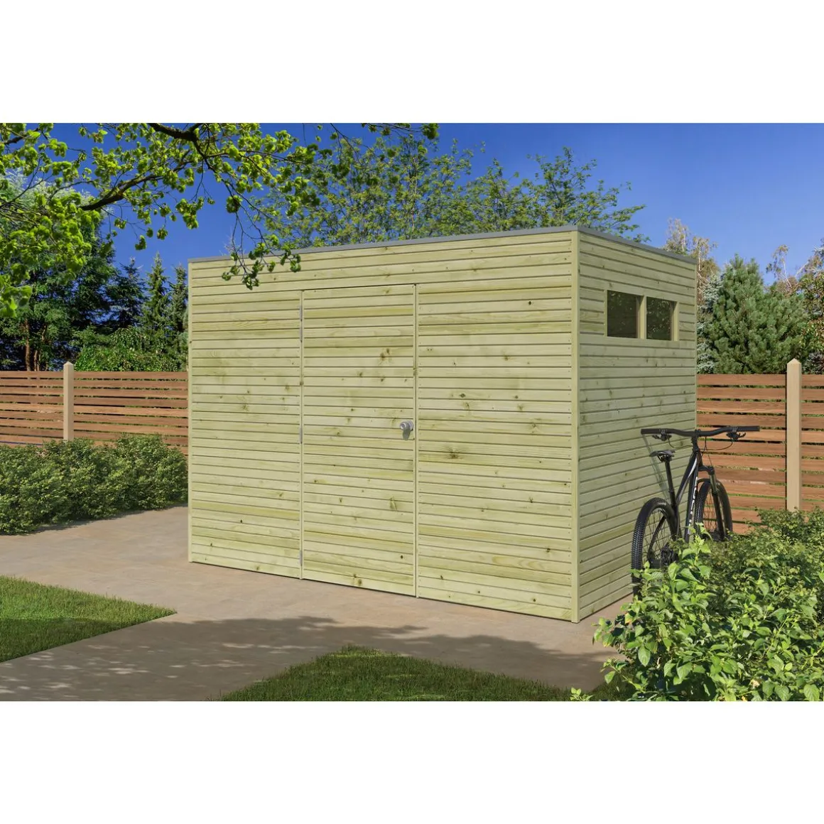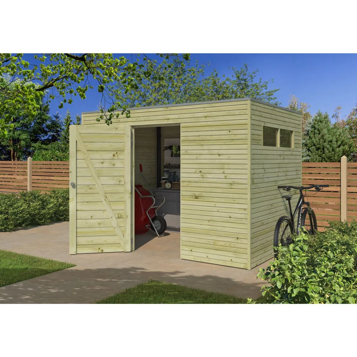 Cet abri de jardin QB 300x210cm en épicéa de Woodlands est particulièrement facile à monter. Les planches des parois sont rabotées à 26mm d’épaisseur dans le profilé QB, très joli et contemporain. La technique d’assemblage garantit un abri de jardin très robuste et étanche au vent. L’abri de jardin a une porte sans seuil, ce qui augmente considérablement la facilité d’utilisation et est en bois traité en autoclave. Il est aussi équipé avec une toiture avec une finition EPDM et une évacuation d’eau. Vous pouvez également ouvrir et fermer l’abri de jardin de l’intérieur, et ce sans les clés. Tout le matériel nécessaire au montage y compris des instructions de montage très explicites.
