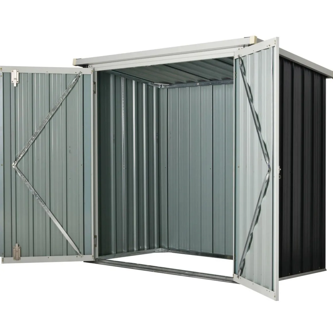 – Double porte avec loquet pour un accès facile et un rangement sûr (possibilité de poser un cadenas)