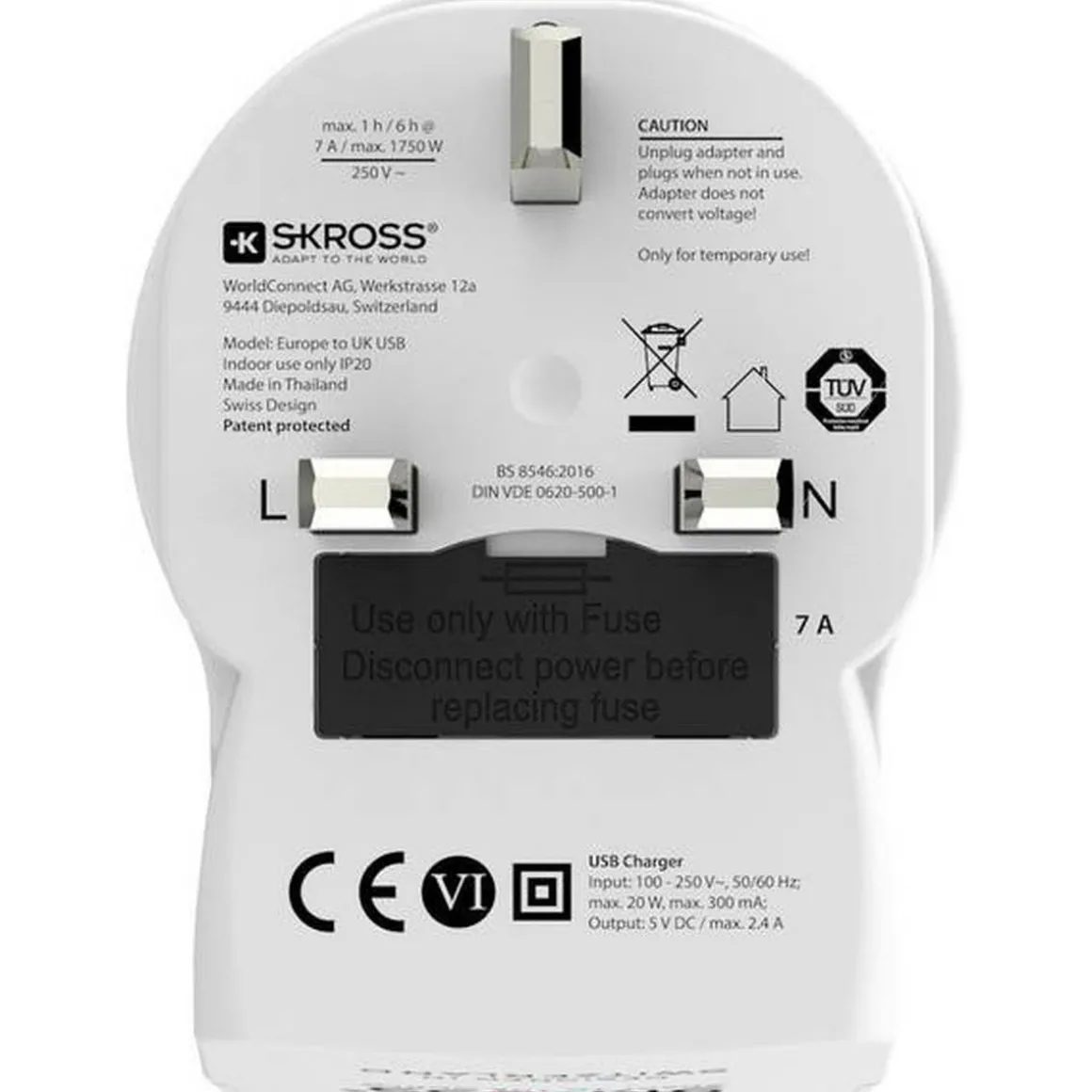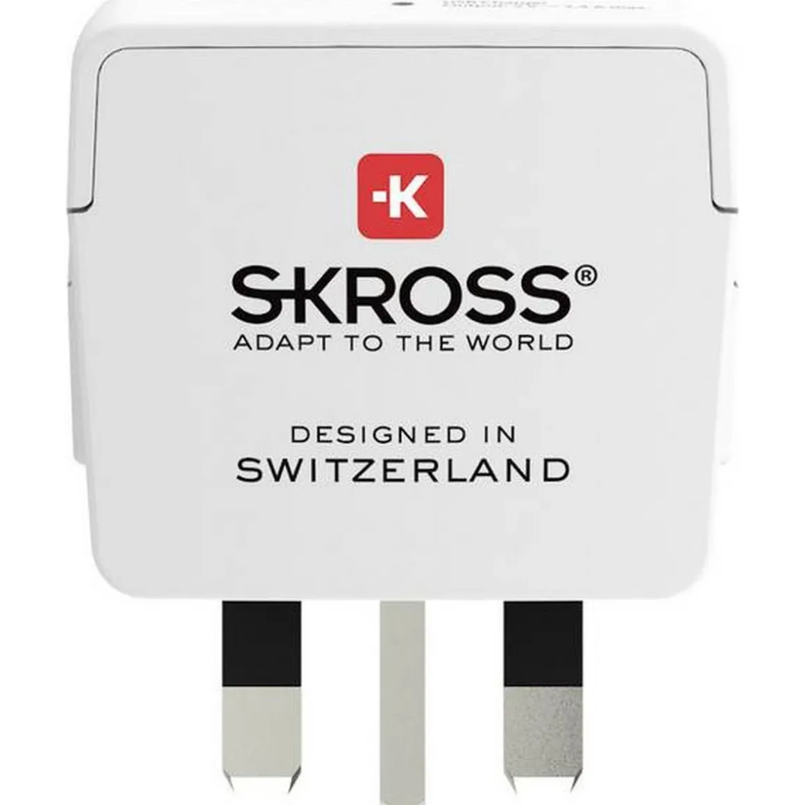 – SKROSS Adaptateur secteur de voyage Europe vers Grande Bretagne + Double chargeur USB – Blanc-