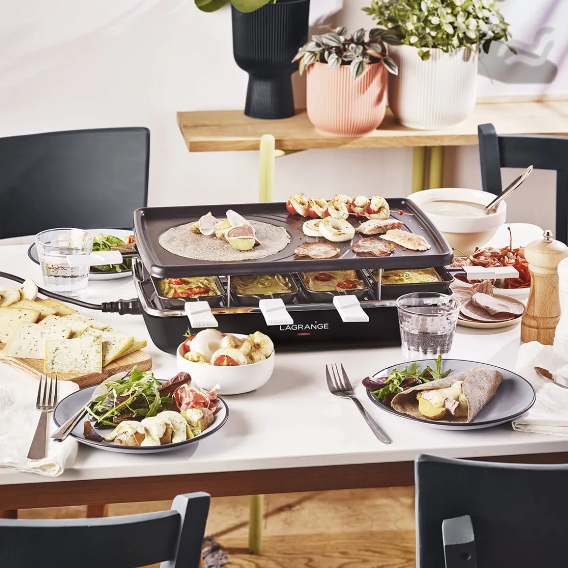 L’appareil à raclette Lagrange 179301 est un appareil électrique conçu pour accueillir jusqu’à 8 personnes. Il est doté d’une puissance de 1200 W et de trois fonctions différentes : raclette, gril et crêpes. Vous pouvez ainsi cuisiner une grande variété d’aliments pour satisfaire tous les goûts. Les patins antidérapants assurent la stabilité de l’appareil sur votre table et les 8 poêlons inclus vous permettent de faire cuire les aliments directement sur la plaque de cuisson. Avec son design noir élégant, cet appareil à raclette sera un ajout attrayant à votre table pour les repas en famille ou entre amis.