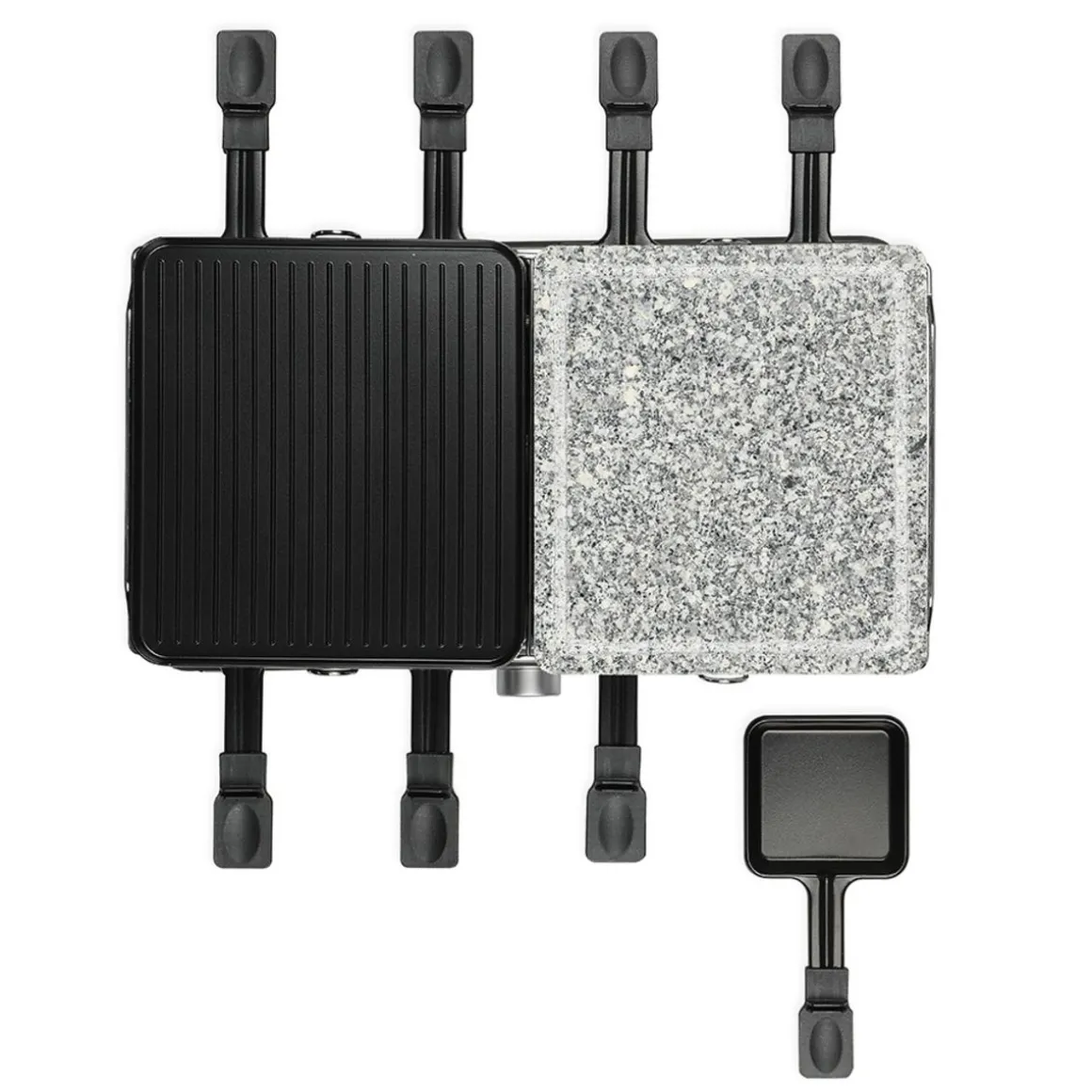 Avec une puissance de 1400W, l’appareil à raclette chauffe en un rien de temps pour commencer les festivités sans plus attendre.