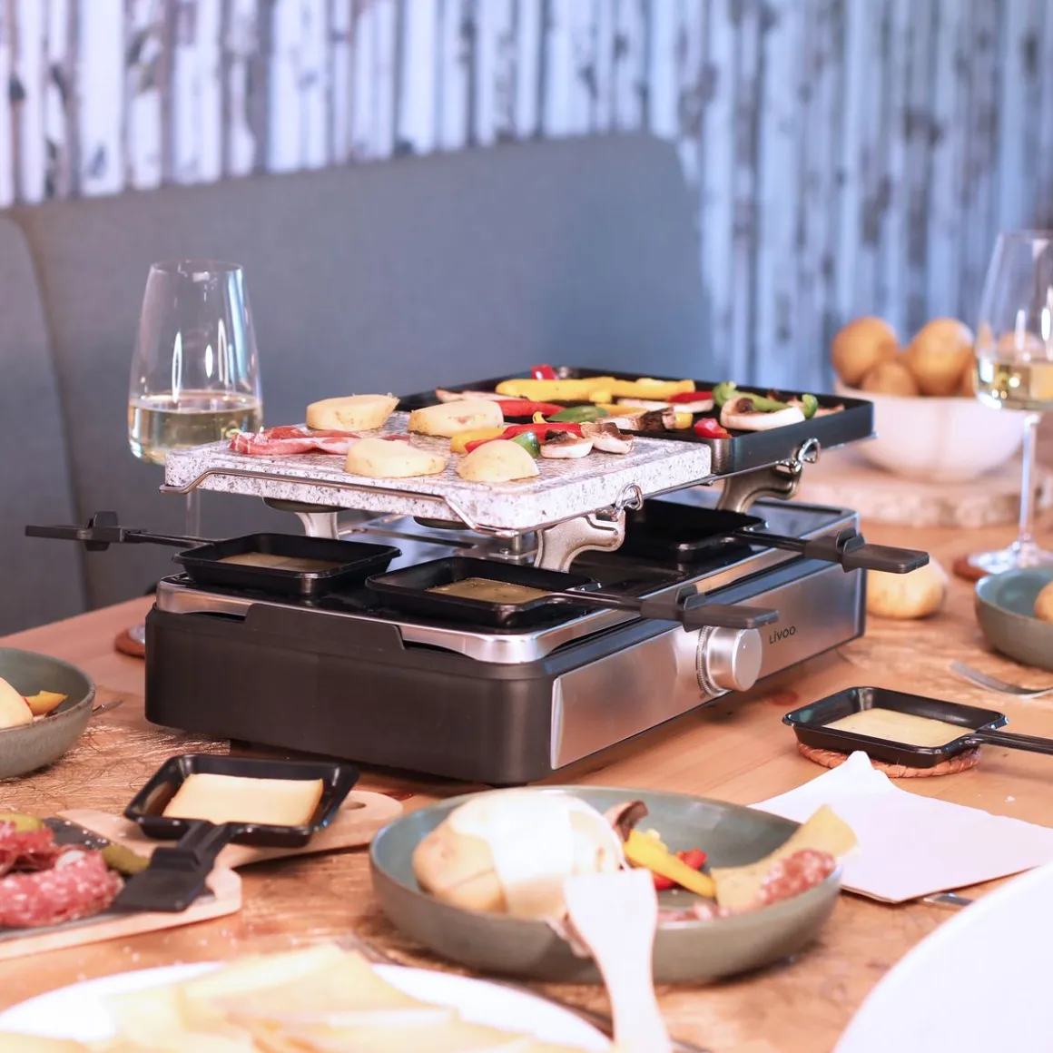 Profitez du thermostat ajustable pour temporiser la cuisson de la raclette à tout moment et faire une petite pause pour discuter avant de déguster une autre assiette de fromage fondu !