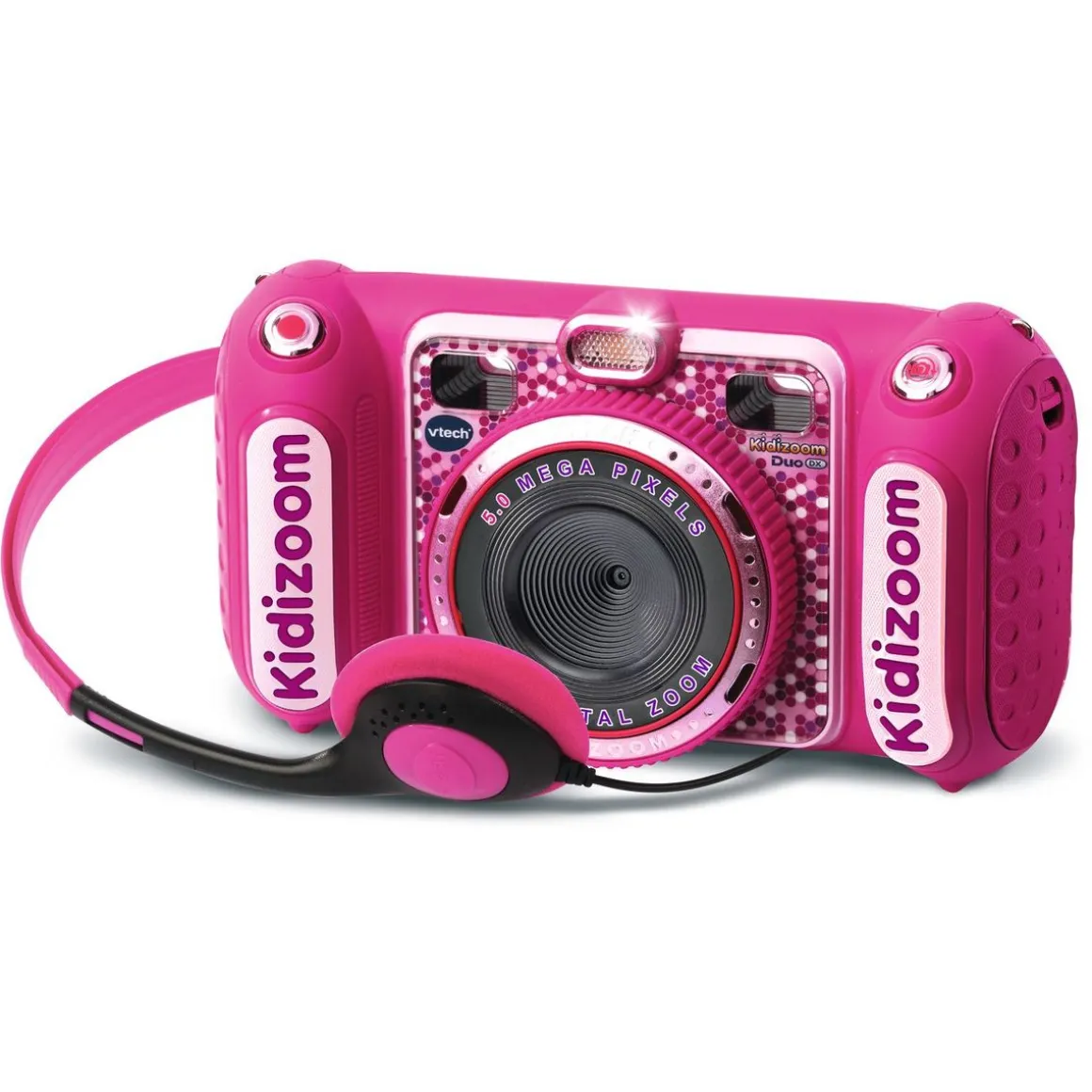 Avec son grand écran couleur 2.4″, le Kidizoom Duo DX rose est plus qu’un appareil photo. Il permet de jouer, faire des trucages rigolos, rajouter des cadres, et même écouter de la musique !