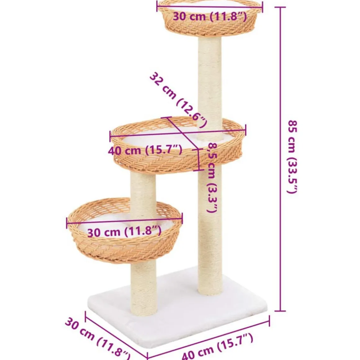 L’arbre a chat donnera aussi a vos petits amis la chance de s’etirer et de faire de l’exercice, surtout pendant les mois froids d’hiver, quand ils sont coinces a l’interieur. Les griffoirs sont enveloppes dans une corde de sisal, ce qui est extremement confortable et pratique pour vos amis felins pour aiguiser leurs griffes. De plus, notre arbre a chat est conçu avec 3 paniers en saule pour permettre a votre chat de faire une sieste ou de se detendre. En outre, il est egalement dote de coussins amovibles pour que votre chat puisse s’allonger confortablement.