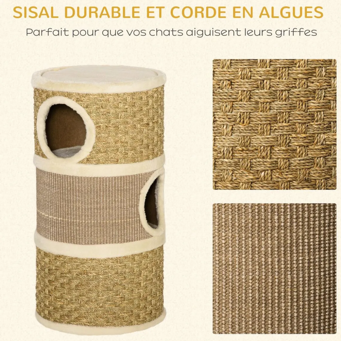 – Tour à griffer pour chat entièrement recouverte de sisal naturel et de cordes d’algues