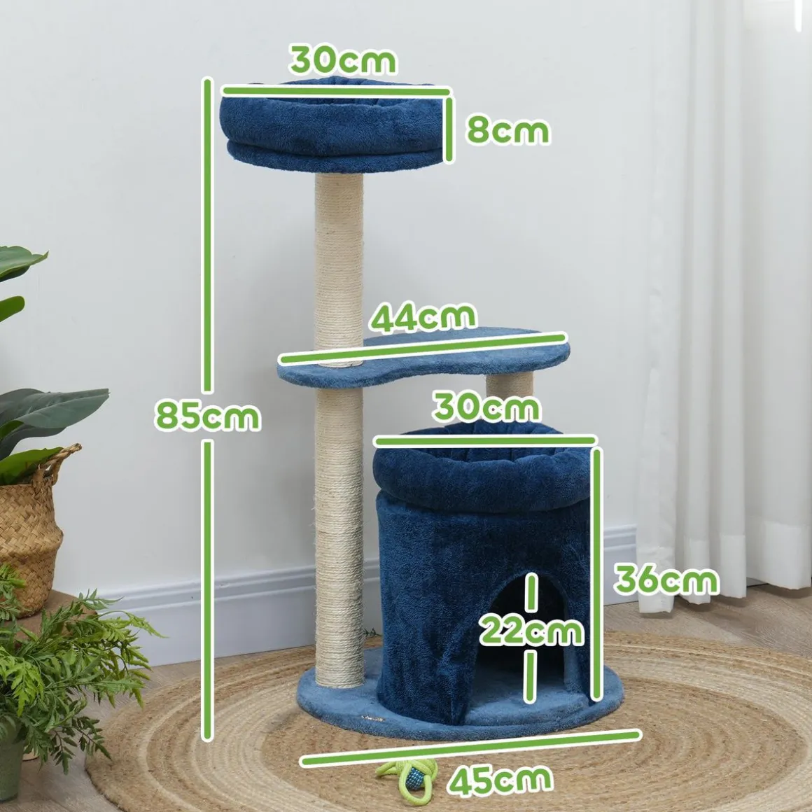 – Arbre à chat comprend deux lits moelleux et une niche pour les siestes des chats