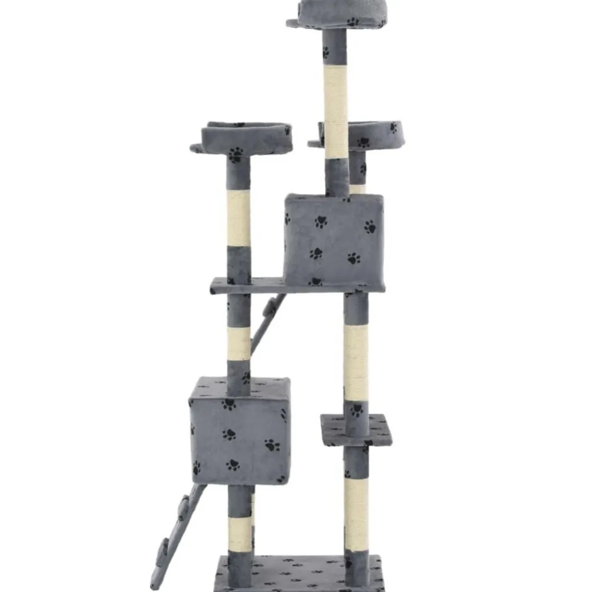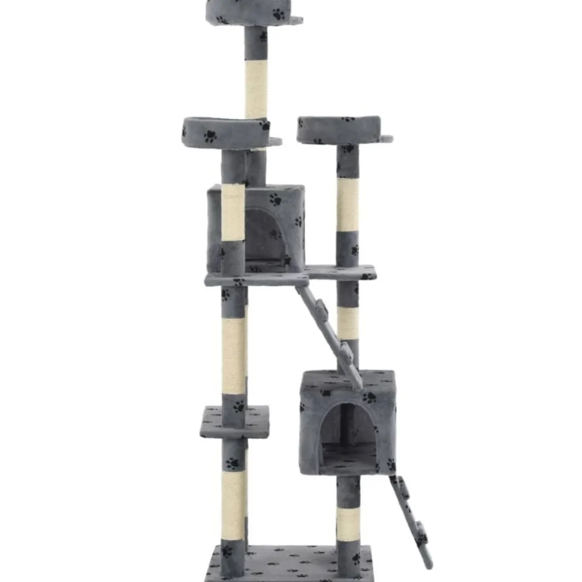 Vos amis felins peuvent aiguiser leurs griffes sur les poteaux a gratter enveloppes dans une corde de sisal, ce qui leur fournit un bon debouche pour leur instinct de gratter. Ils apprecieront egalement de se poursuivre en sautant dans ce centre de jeu amusant. Quand ils se seront suffisamment amuses, vos petits amis adoreront se reposer sur les plates-formes superieures ou ils auront une meilleure vue. Ils peuvent egalement se cacher dans les maisons confortables pour faire une sieste. Avec toutes ces fonctionnalites amusantes, cette tour pour chats deviendra le lieu de detente prefere de vos amis a quatre pattes ! L’arbre a chat est facile a assembler.