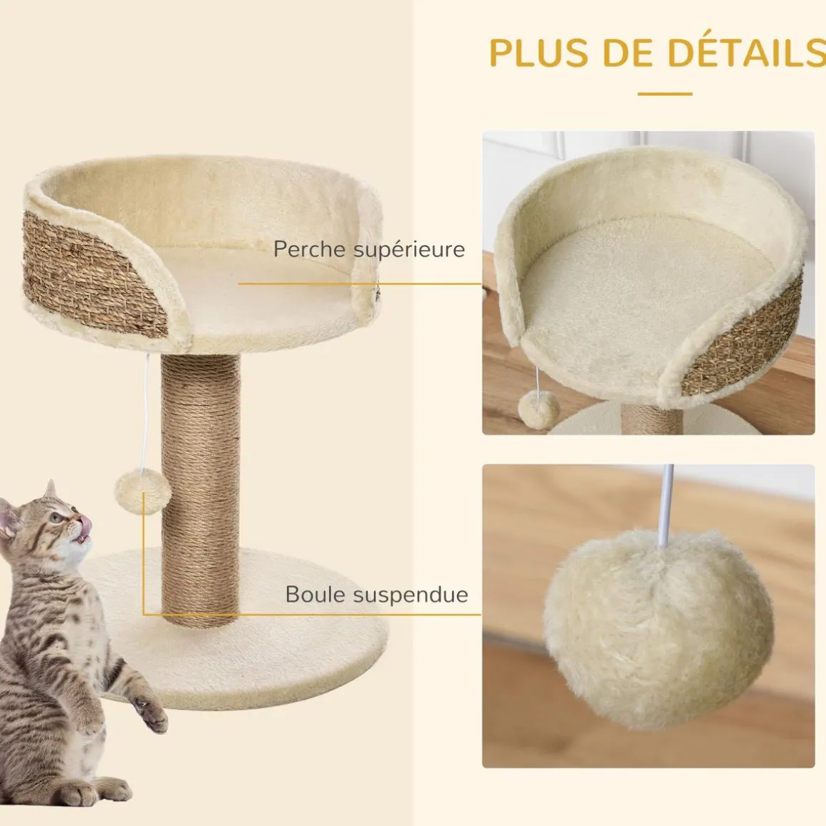 – La conception à 2 niveaux satisfait l’instinct d’escalade de votre chat