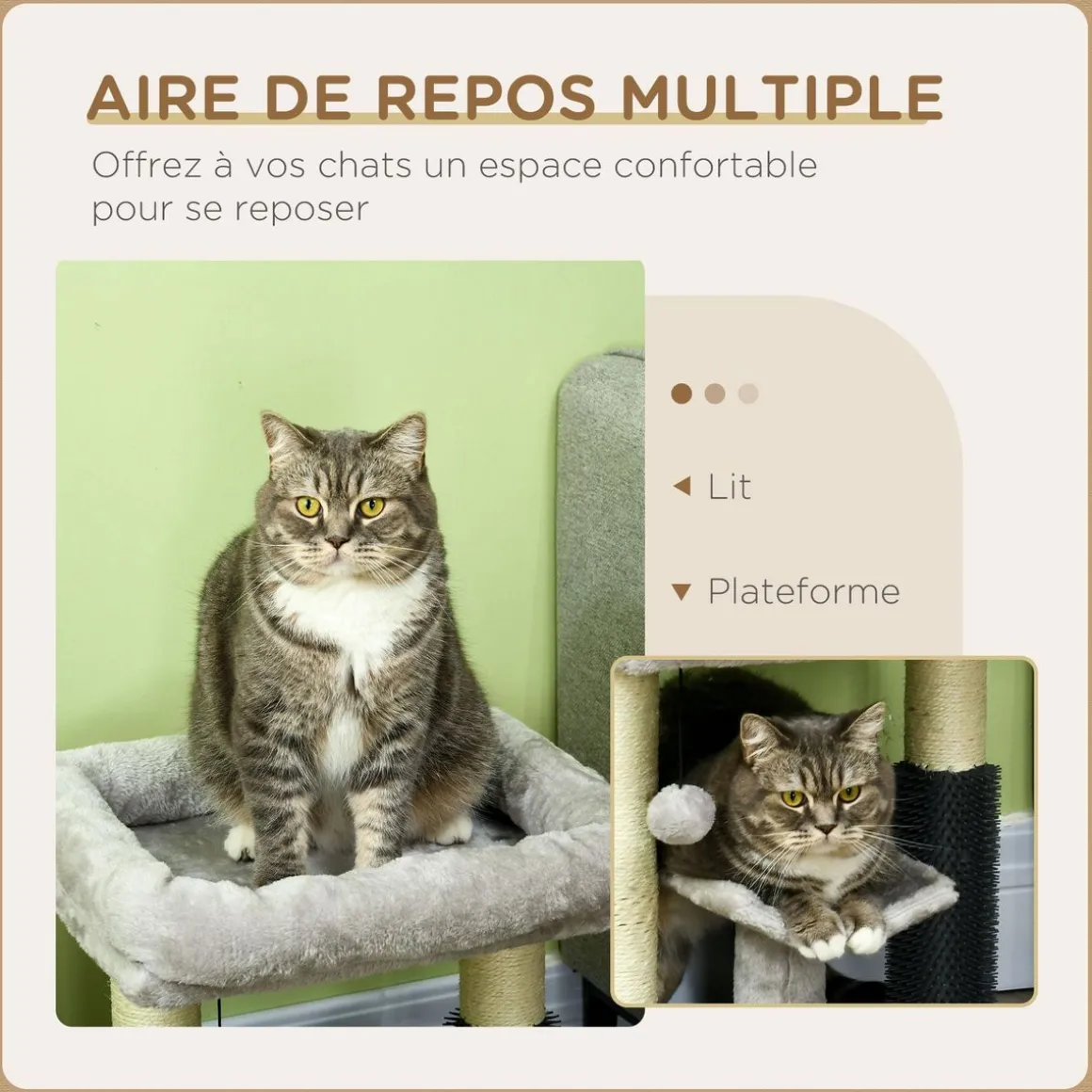 – Grand confort : revêtement en peluche courte haute densité 220 g/m² d’une grande douceur + griffoirs en sisal naturel pour le soin des griffes de votre chat et son bien-être