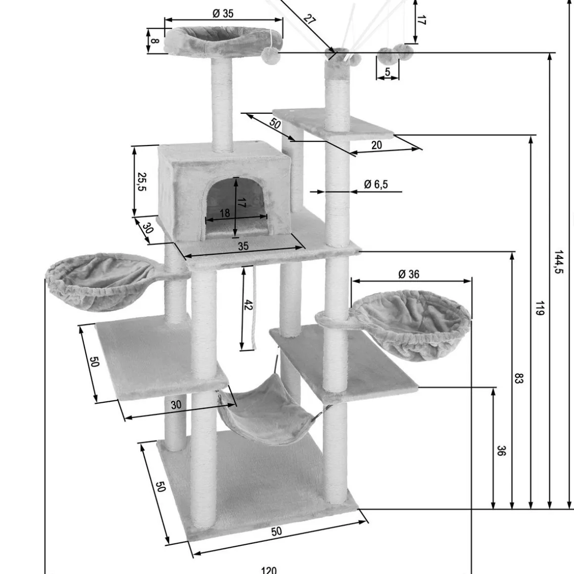 - Diamètre des poteaux en sisal : environ 6,5 cm