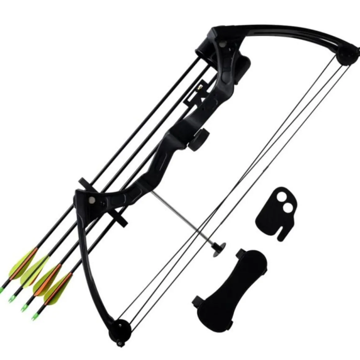 Cet arc à poulies, avec une longueur d’arc d’environ 27 pouces et un poids de tir de 9 kg, est spécialement conçu pour les adolescents. Ultra portable à 1,3 kg, vous pouvez l’emporter avec vous toute la journée. La livraison comprend un arc à poulies, un repose-flèche et 4 flèches en aluminium de 25 .