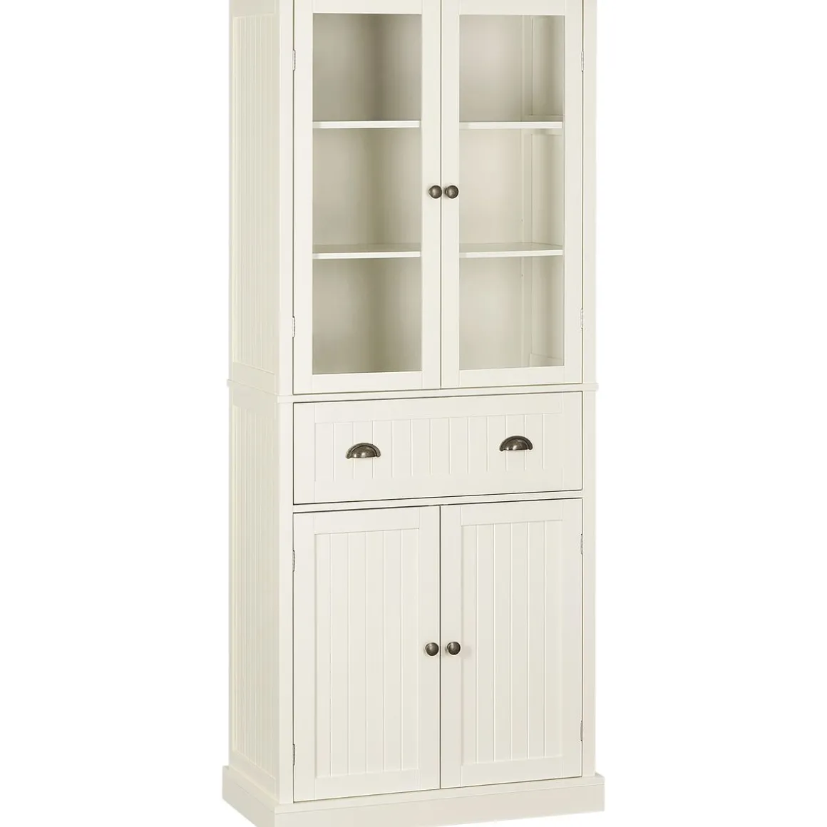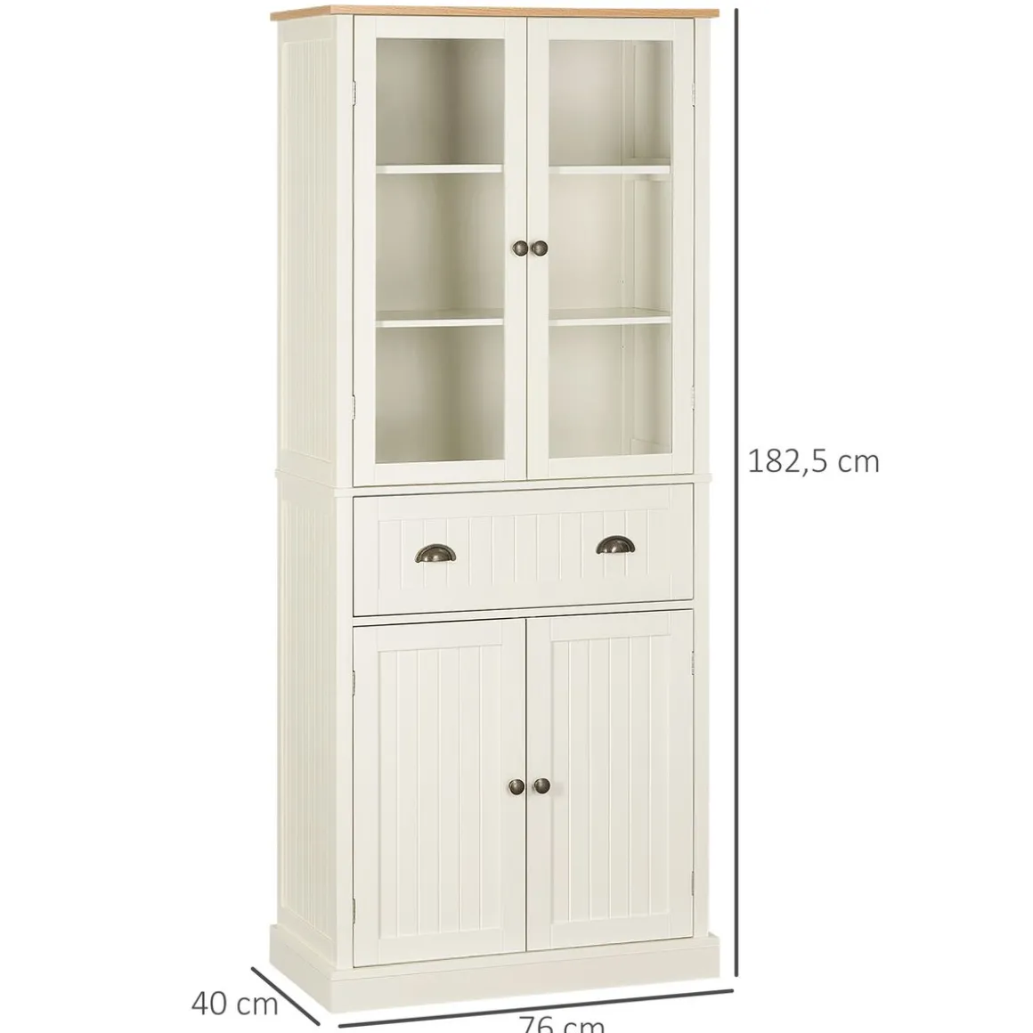 – Excellent niveau de finition : poignées de portes et tiroir en métal aspect laiton vieilli, charnières robustes, panneaux épais 1,5 cm, étagères réglables en hauteur