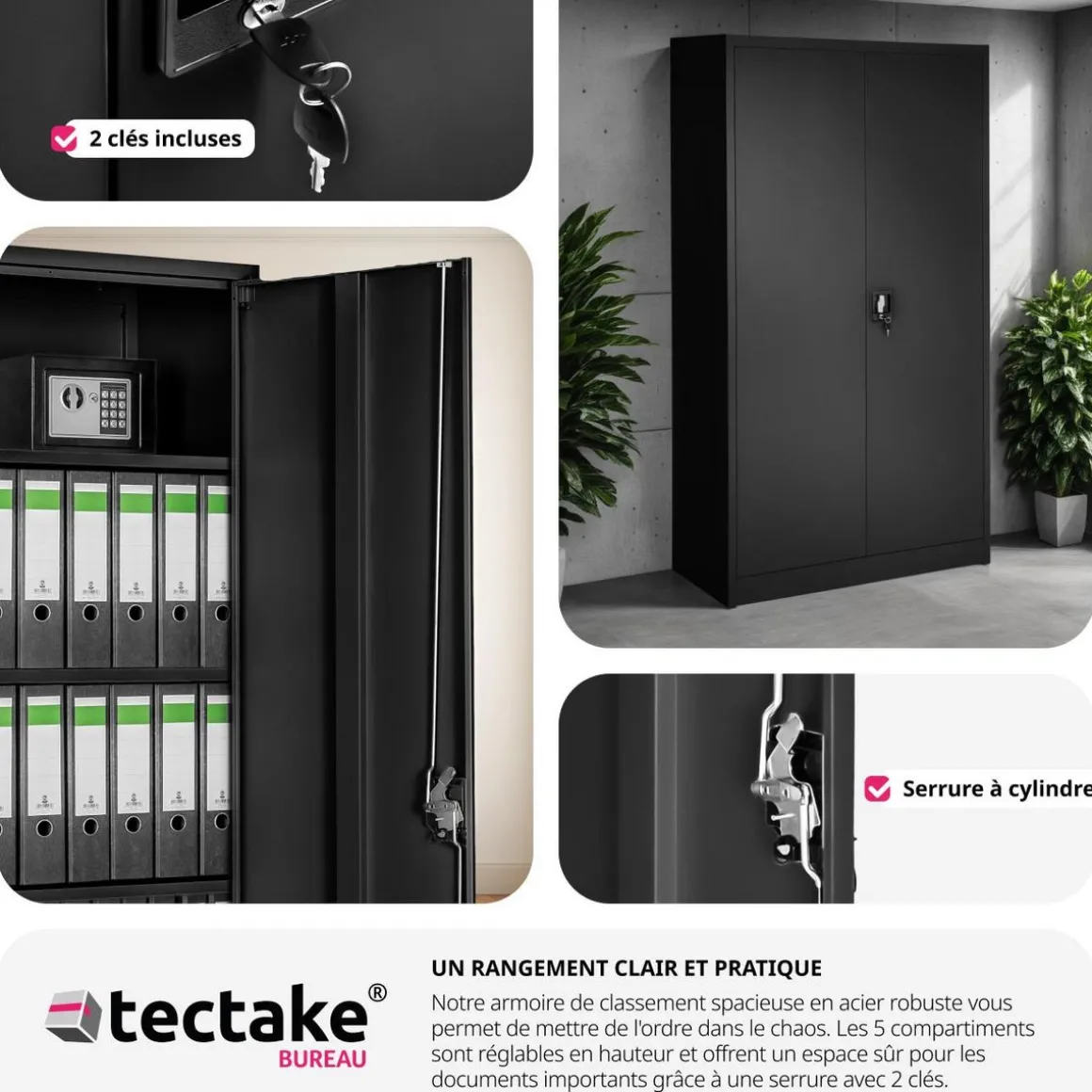 Fabriquée en acier de haute qualité revêtu par poudre, cette armoire métallique est conçue pour durer. La construction robuste assure une durabilité à long terme, même dans les environnements de travail les plus exigeants. Investissez dans un meuble range dossier qui offre à la fois sécurité, flexibilité et une grande capacité de rangement.