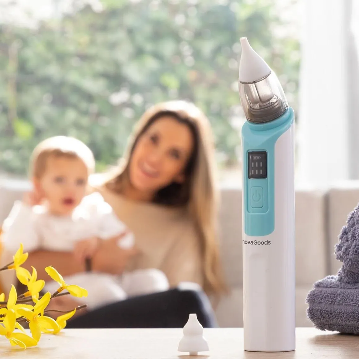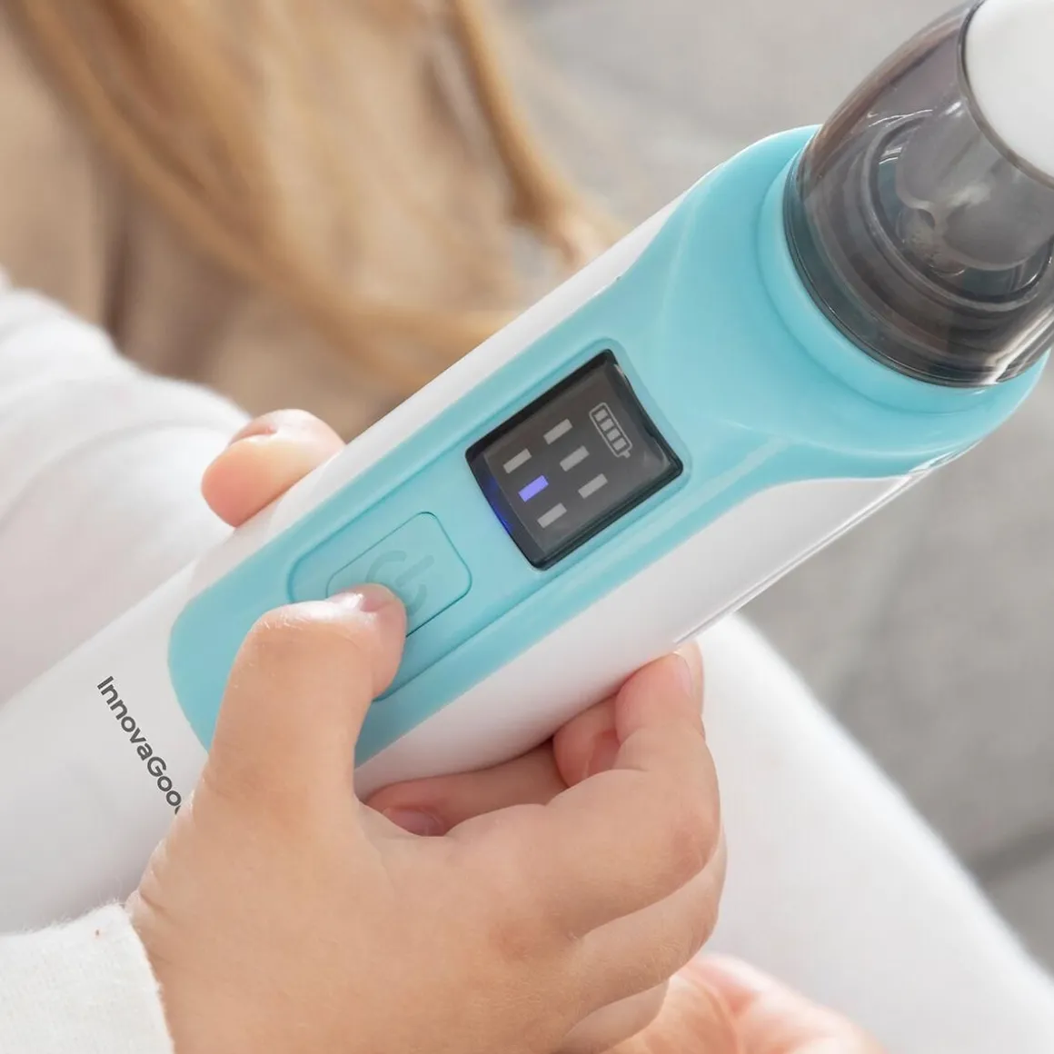 Cet aspirateur nasal électrique portable élimine en douceur et efficacement les mucosités du nez de bébé pour faciliter sa respiration. Il dispose de 6 intensités d’aspiration. Comprend 2 embouts en silicone, 10 filtres réutilisables et un câble de chargement USB. Un aspirateur nasal rechargeable avec accessoires qui prévient l’obstruction nasale pour que bébé puisse respirer sans difficulté, pour faciliter l’alimentation et favoriser un meilleur sommeil et un meilleur repos. 6 vitesses d’aspiration : ce nettoyeur de nez pour bébé dispose de 6 niveaux d’intensité pour une aspiration puissante et plus efficace qui s’adapte à chaque type de mucosité, en fonction de sa dureté et de sa persistance. Une solution saline homologuée peut être appliquée au préalable pour ramollir les mucosités (non fournie). Rechargeable, silencieux : notre aspirateur nasal se recharge par USB, ce qui vous permet de l’utiliser confortablement à tout moment et en tout lieu. Son niveau sonore est très bas pour ne pas réveiller ou effrayer votre bébé, il peut même être utilisé pendant que votre enfant dort. Câble USB vers micro USB inclus. Ergonomique, compact, portable : cet aspirateur de nez a été fabriqué avec des matériaux de qualité pour garantir une sécurité maximale dans les soins apportés à votre bébé. Grâce à son design léger et compact, vous pouvez facilement le ranger et le transporter, l’emporter dans votre sac à main, etc. et l’utiliser quand vous en avez besoin. Adaptable, avec accessoires : notre aspirateur nasal électrique comprend 2 embouts nasaux en silicone très doux et de formes différentes (embout courbe pour les bébés de 0 à 2 ans et embout triangulaire pour les enfants à partir de 2 ans). Il comprend également 10 filtres en éponge réutilisables pour retenir les mucosités et garder l’aspirateur propre. Facile à nettoyer, démontable, réutilisable : la tête amovible et lavable facilite le nettoyage et la désinfection. Les embouts nasaux et les filtres doivent également être nettoyés soigneusement après chaque utilisation. Manuel d’instructions inclus pour une utilisation correcte, hygiénique et sûre.