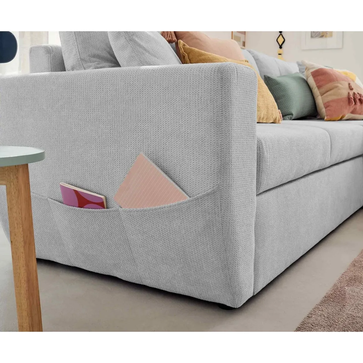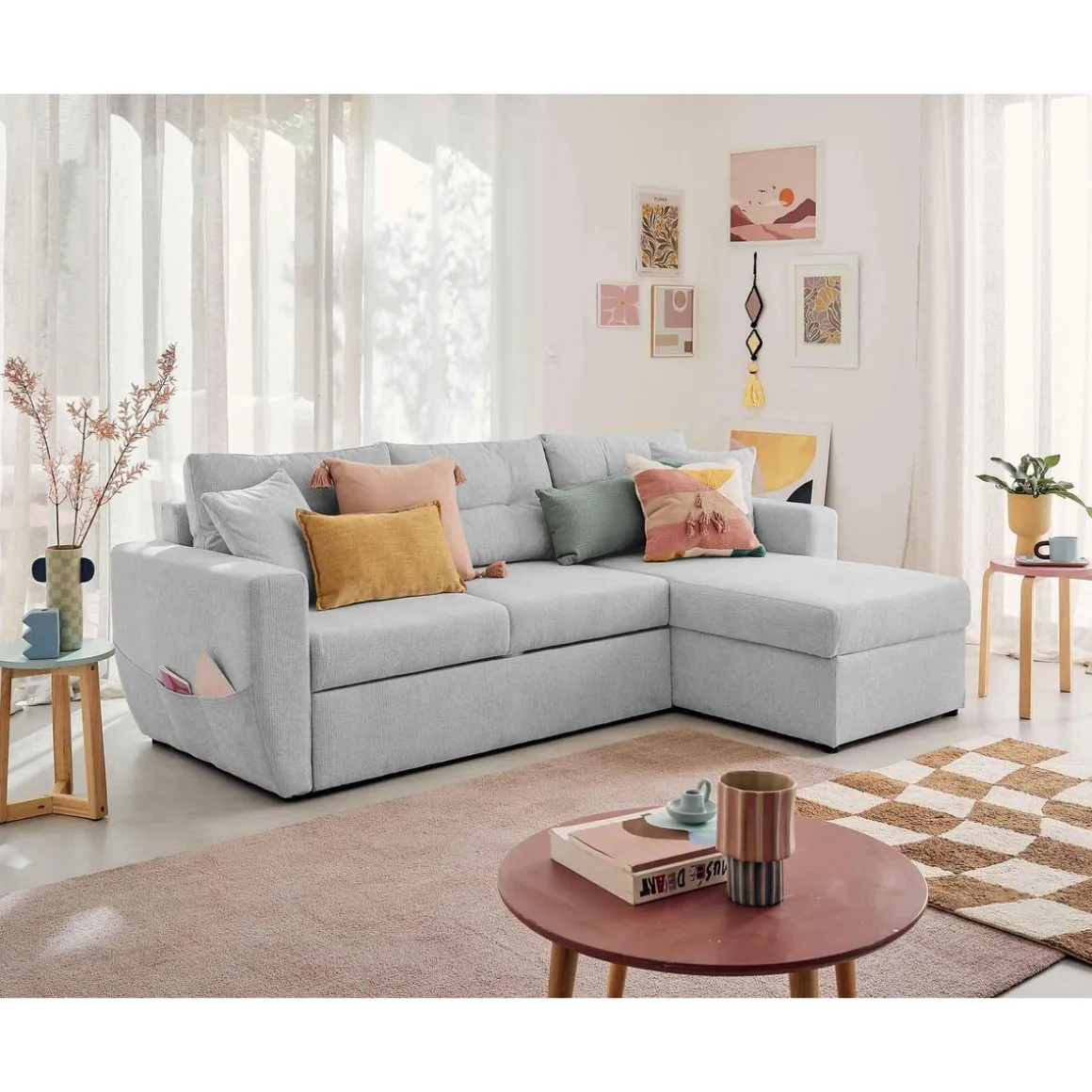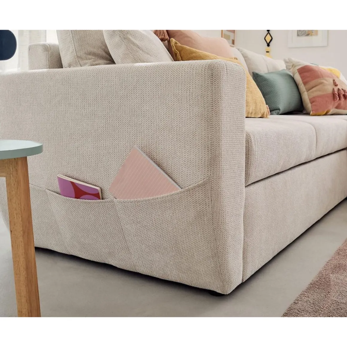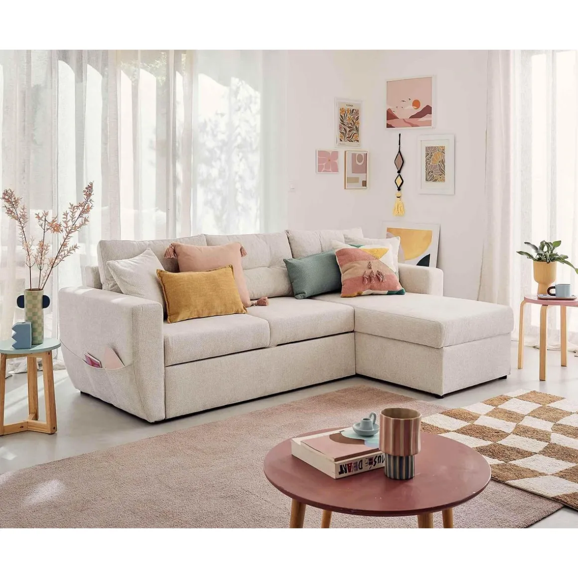 Le canapé d’angle Astoria possède une poche sur le côté de l’accoudoir afin d’y ranger télécommandes et magazines. Une fonction convertible est aussi disponible en dépliant le tiroir se trouvant sous l’assise pour accueillir occasionnellement vos proches ou encore passer un moment détente devant une série. Vous trouverez aussi un coffre de rangement sous la méridienne, pratique pour y glisser plaids, coussins. A droite ou à gauche, choisissez la position de l’angle qui vous convient grâce à sa fonction réversible.