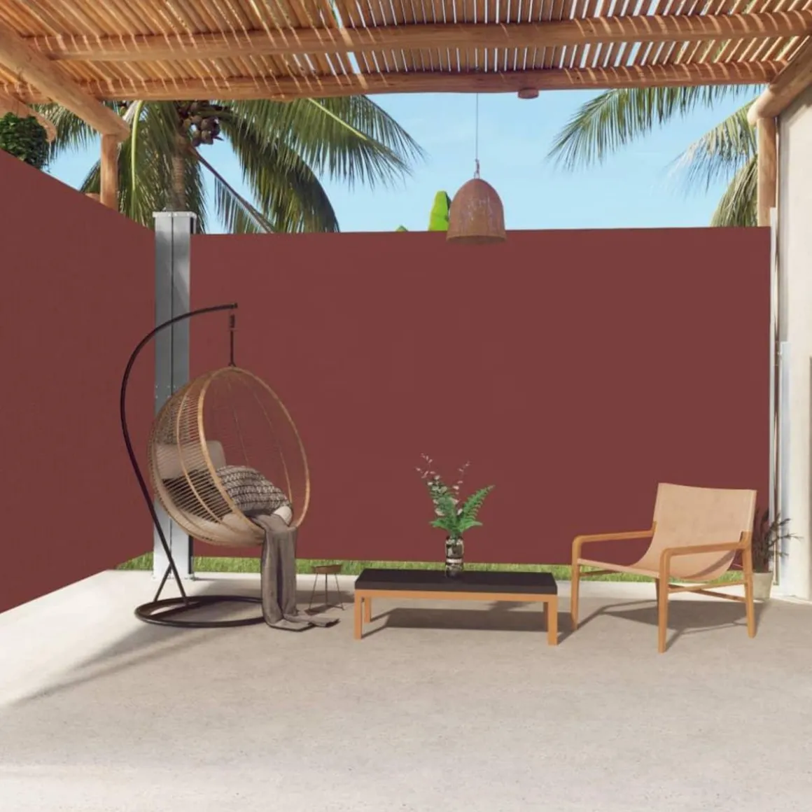 La conception simple mais elegante en fait un complement ideal pour votre jardin, terrasse, balcon, etc. L’ecran d’intimite est dote d’une fonction d’enroulement automatique et sa largeur est reglable jusqu’a 600 cm. L’ecran d’exterieur est en polyester resistant aux UV, a la dechirure et a l’eau, avec un revetement PU.