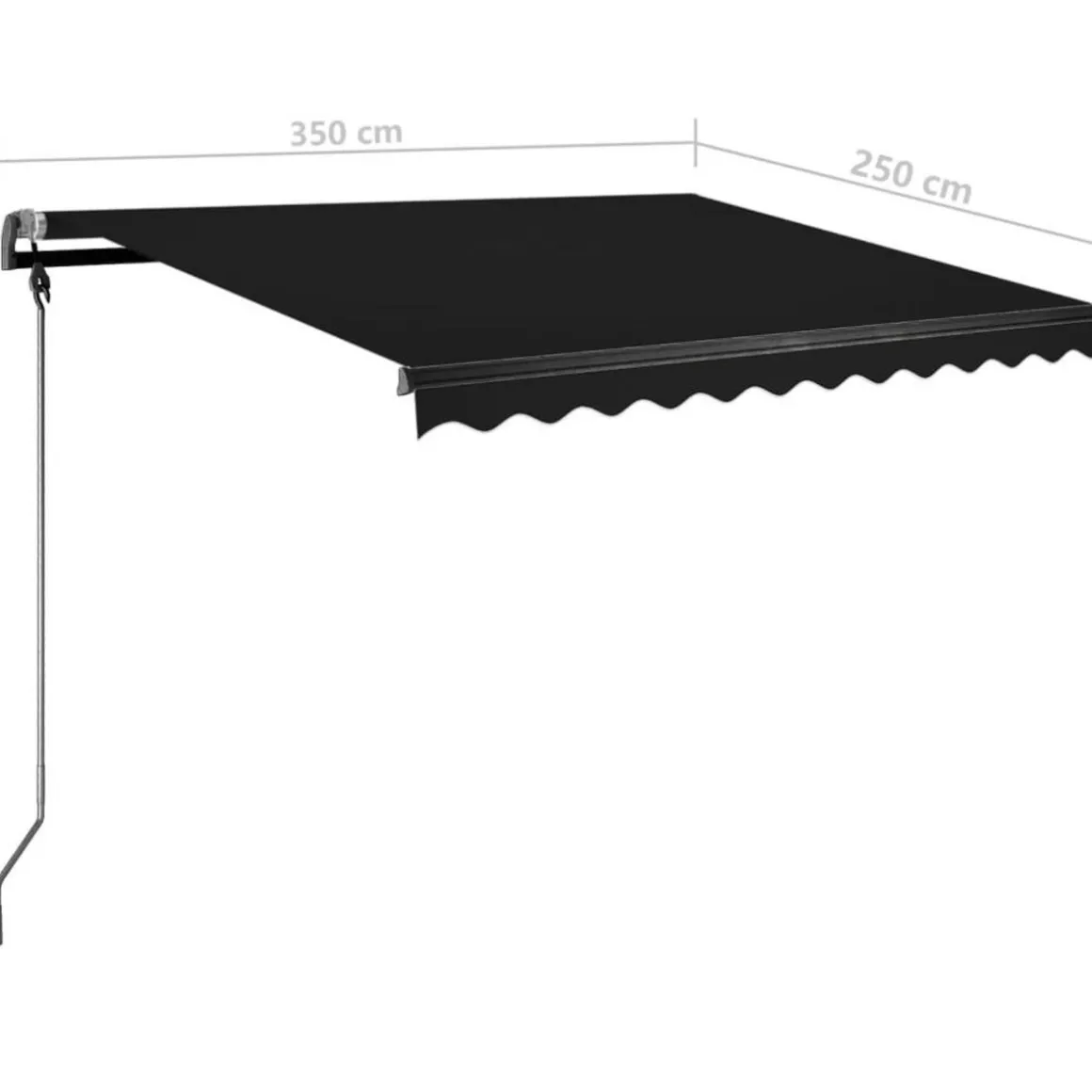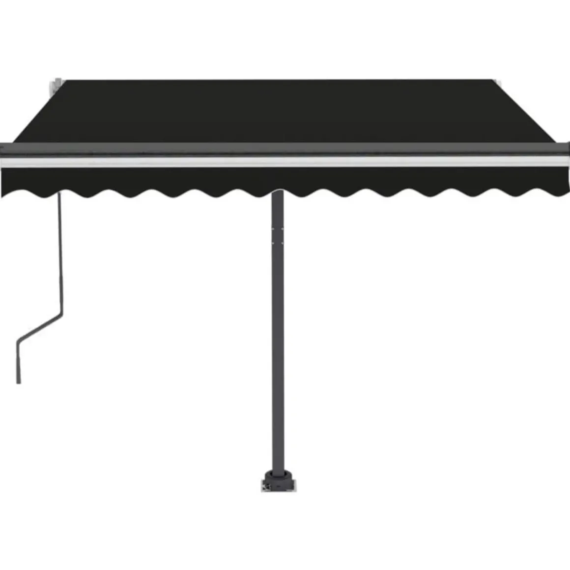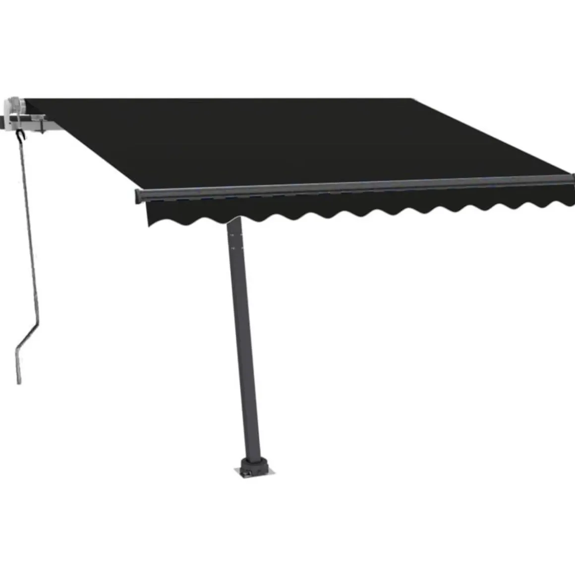 Cet auvent d’exterieur est construit avec un cadre en aluminium enduit de poudre resistant a la rouille, ce qui le rend leger mais robuste. Le tissu de l’auvent de terrasse est en polyester haute densite avec revetement PU, resistant aux UV et a l’eau. De plus, l’angle et la hauteur peuvent etre ajustes pour repondre a vos besoins specifiques. Vous pouvez ouvrir et retracter le store autoportant en douceur grace a la longue manivelle. De plus, les lumieres LED a energie solaire fournissent un eclairage econome en energie la nuit. La base robuste peut pivoter a 360 degres, ce qui permet un ajustement maximal.