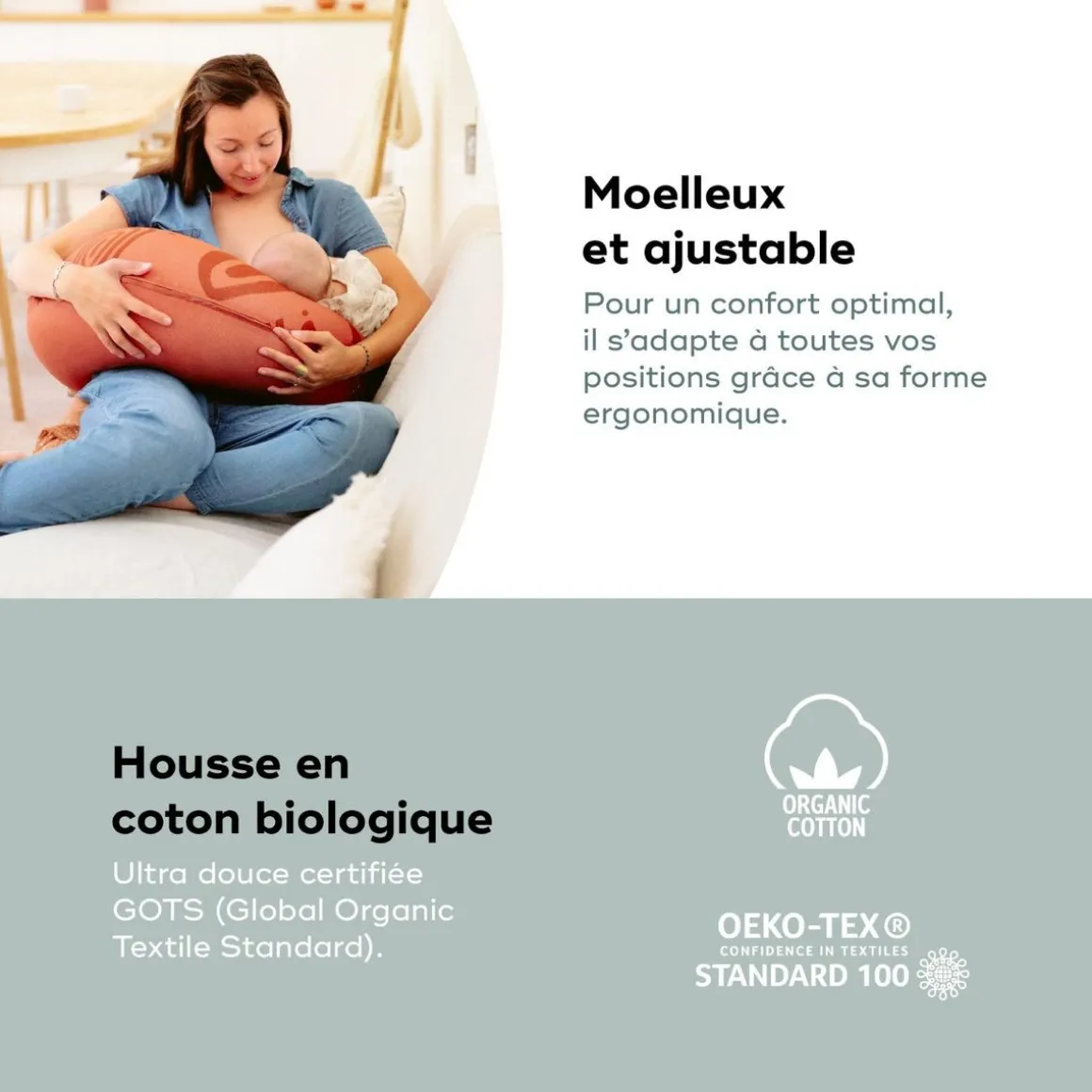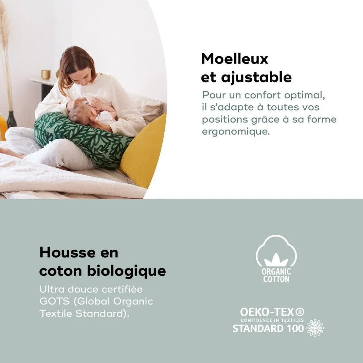 – Le coussin bénéficie de la certification Oeko-Tex (R), gage d’éco-responsabilité, assure une qualité et la non-toxicité des matériaux pour votre bébé