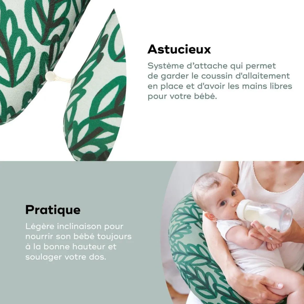 Un système d’attache permet de garder le coussin en place et d’avoir les mains libres pour votre bébé lorsque vous le nourrissez.