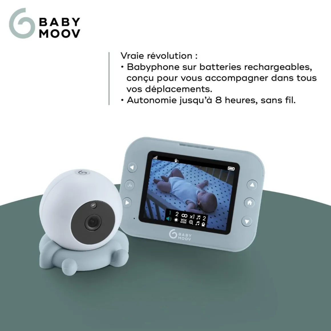Et durant la journée, les déplacements et les siestes, utilisez librement votre babyphone sur batteries sans soucis !