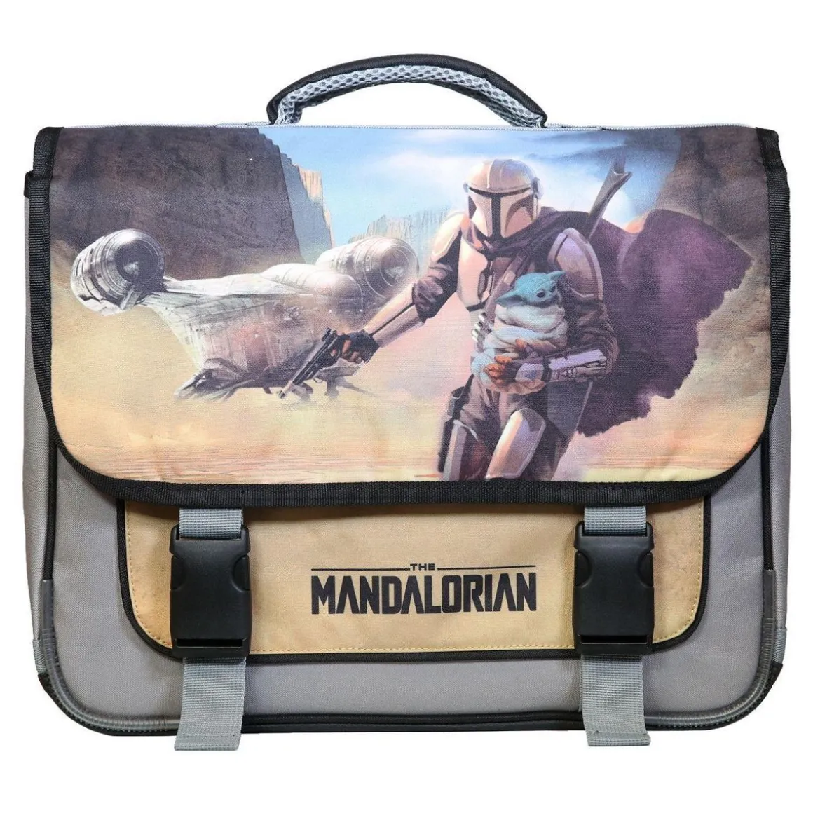 Le cartable The Mandalorian 38cm sera parfait pour que votre enfant passe une bonne rentrée des altes et encore mieux, une bonne année scolaire ! Partez à l’aventure avec Le Mandalorian alias Mando ! Ce grand cartable avec ses 2 compartiments et sa poche avant permettra à votre enfant d’y ranger sans problème toutes ses fournitures scolaires. Le tout protégé par un rabat fermé avec deux clips. Ses dimensions de 38cm de long, 13cm de large et 31cm de haut sont adaptées pour les altes de primaire. Coloris gris et beige. 100% polyester. Des bandes réfléchissantes assurent la visibilité de votre enfant sur le chemin de l’école. Nous avons équipé ce cartable d’un dos et de bretelles matelassés ainsi que d’un fond et de coins renforcés. Soyez certain que ce modèle robuste garanti 10 mois ne vous décevra pas.
