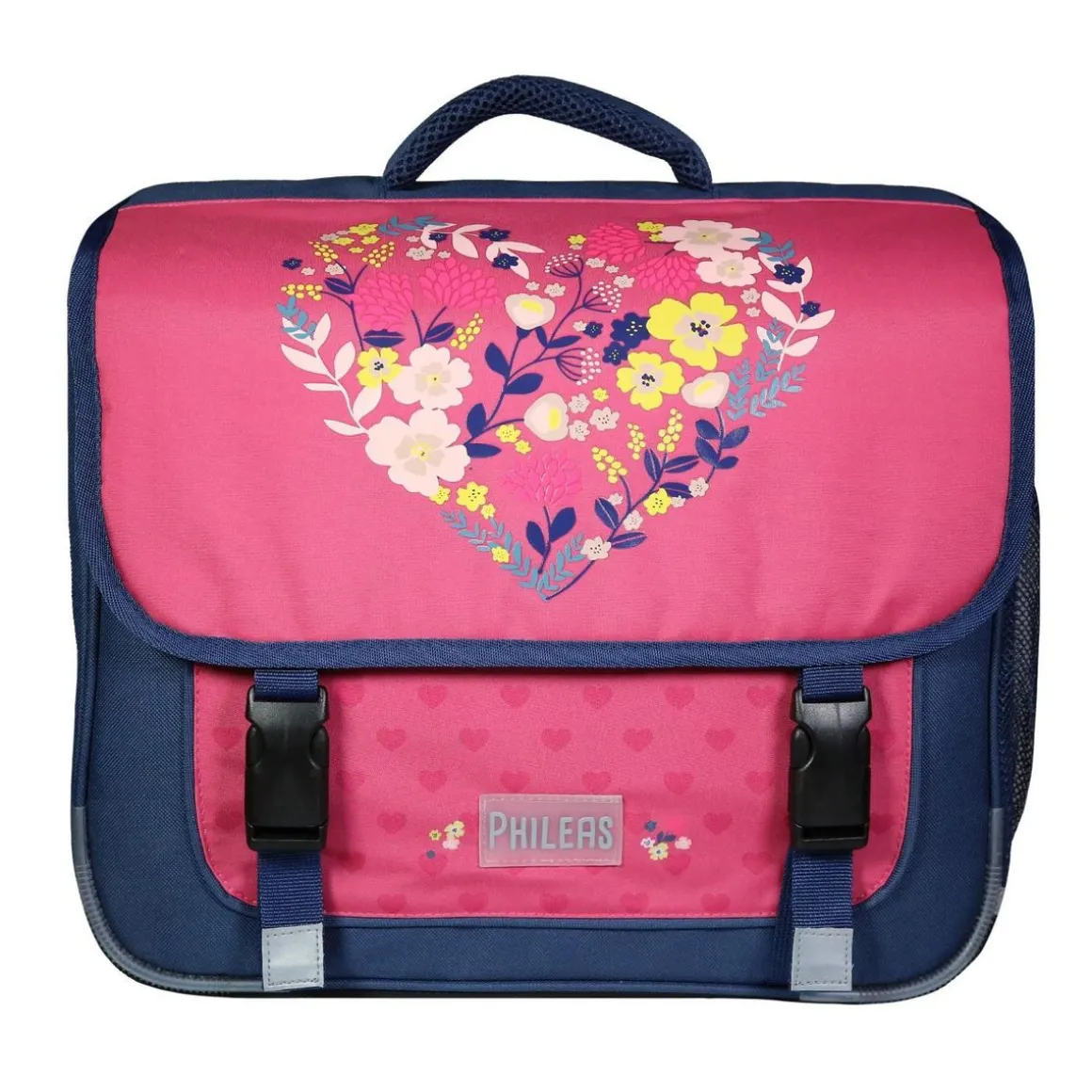 *LE MEILEUR DES CARTABLES* Avec le cartable Phileas Rose, ranger ses affaires devient un jeu d’enfant et la fin des cahiers perdus est assurée. Préparez-vous à voir votre enfant devenir la star de la cour de récréation avec ce sac qui fera des jaloux ! Idéal pour les altes de primaire. *ULTRA RÉSISTANT* Fabriqué en polyester de haute qualité, le cartable Phileas Bleu est conçu pour résister à toutes les épreuves de la vie scolaire. Qu’il soit trainé, bousculé, et manipulé dans tous les sens lors des journées d’école, ce cartable reste solide et fiable.*FACILITE LE QUOTIDIEN* Vous cherchez un cartable à la fois pratique et stylé pour la rentrée des altes? Les deux compartiments spacieux, la poche avant sous rabat et la poche bouteille permettent une organisation facile. Les parties réfléchissantes assurent une sécurité accrue. *STYLE ET FONCTIONNALITÉ* Le cartable Phileas Rose combine style et praticité avec ses designs originaux et colorés. Inspiré des dernières tendances, il est conçu pour plaire aux enfants tout en étant hyper pratique. Notre système breveté Smart Comfort assure un confort incroyable grace au dos en mousse EVA, ses bretelles matelassées et son fond renforcé. *RAPPORT QUALITÉ PRIX* Investissez dans la durabilité avec le Cartable 38 Phileas Rose et dites adieu aux achats fréquents de sacs. Offrez à votre enfant plus qu’un simple cartable, mais un compagnon de longue route pour ses années d’école. Faites-lui plaisir tout en faisant un choix avisé pour votre portefeuille.