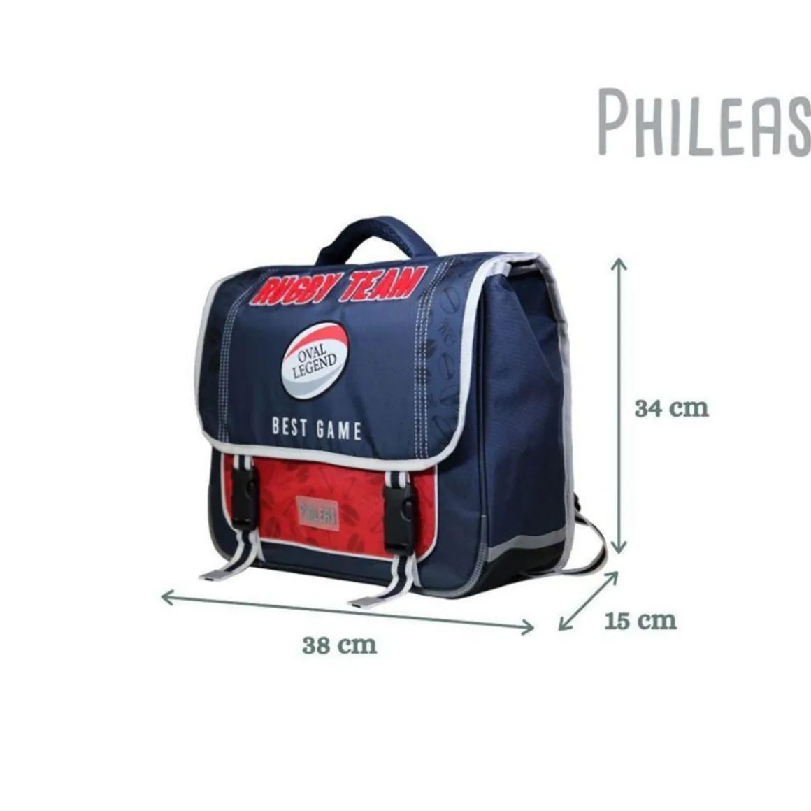 Le cartable Phileas 38cm est très innovant grâce à son système Smart Comfort qui le rend si unique. Son design ergonomique est inspiré des sacs de randonnée pour en faire le PLUS CONFORTABLE DES CARTABLES ! Les passionnés de ballon oval seront propulsés au bord du terrain ! Ce grand cartable avec ses 2 compartiments et sa poche avant permettra à votre enfant d’y ranger sans problème toutes ses fournitures scolaires. Le tout protégé par un rabat fermé avec deux clips. Ses dimensions de 38cm de long, 16cm de large et 34cm de haut sont adaptées pour les altes de primaire. Coloris bleu et rouge. 100% polyester. Le dos moulé en mousse EVA permet au cartable d’épouser parfaitement le dos de l’enfant en allégeant la pression sur la colonne vertébrale. La mousse haute densité en demi-lune permet de protéger le bas du dos. Les bretelles ergonomiques enveloppent la partie avant des épaules avec une mousse ultra confort. Des sangles de rappel de charge permettent le réglage en hauteur, le tout pour une meilleure répartition du poids sur les épaules et un portage au plus près du dos garantissant une très bonne stabilité. Pour garantir la sécurité de votre enfant, ce cartable est équipé de bandes réfléchissantes. Soyez certain que ce modèle robuste garanti 10 mois ne vous décevra pas.