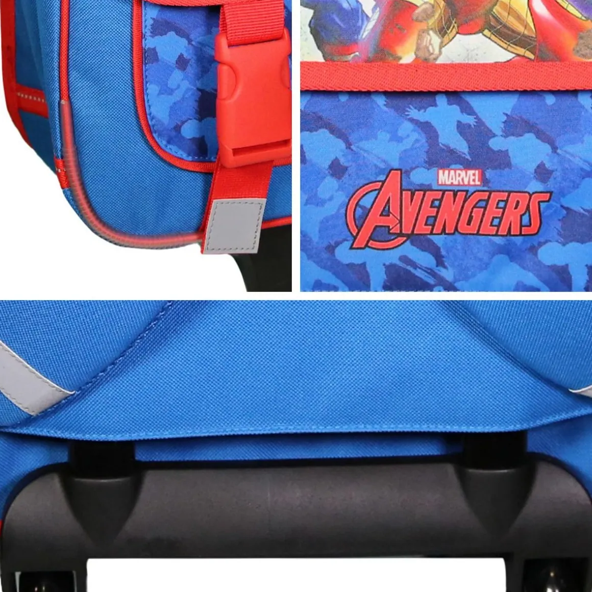 *STYLE, CONFORT & ORGANISATION* Pour la rentrée, optez pour un cartable Avengers multicolore alliant beauté, praticité et fonctionnalité. Avec ses 2 compartiments, sa poche avant sous le rabat, et sa poche bouteille, il offre un rangement optimal pour tous les essentiels scolaires.*ROBUSTESSE ET DURABILITÉ GARANTIES* Fabriqué en polyester de haute qualité, ce cartable à roulettes est conçu pour résister aux usures quotidiennes, assurant une longévité remarquable. Les bretelles matelassées, le fond renforcé et le dos matelassé garantissent une solidité à toute épreuve. Idéal pour les altes de primaire. *DIMENSIONS IDÉALES POUR LES ÉCOLIERS* Le cartable à roulettes Avengers mesure 38 cm de long, 14 cm de large et 34 cm de haut, pour un poids de 1650 grammes. Parfaitement adapté à la morphologie des enfants, il offre un équilibre idéal entre capacité de rangement et confort de portage. *DESIGN & FONCTIONNALITÉ* Le cartable à roulettes Avengers se distingue par son design captivant, rapellant l’univers de la saga. Ses parties réfléchissantes ajoutent une touche de sécurité, tandis que son style moderne et coloré fera le bonheur des enfants. *LA QUALITÉ À PRIX MALIN* Choisissez pour votre enfant, un cartable de qualité qui allie durabilité, fonctionnalité et style, le tout à un prix compétitif. Un choix judicieux pour un investissement sur le long terme.