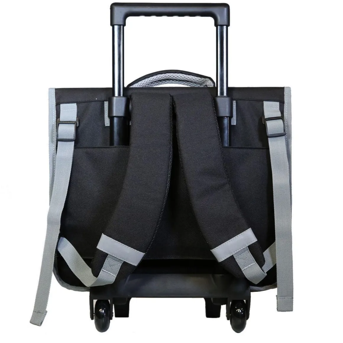 Le cartable à roulettes Star Wars 38cm sera parfait pour que votre enfant passe une bonne rentrée des altes et encore mieux, une bonne année scolaire ! Prenez le contrôle de la galaxie avec ce design Stormtrooper ! Ce grand cartable avec ses 2 compartiments et sa poche avant permettra à votre enfant d’y ranger sans problème toutes ses fournitures scolaires. Le tout protégé par un rabat fermé avec deux clips. Ses dimensions de 38cm de long, 14cm de large et 34cm de haut sont adaptées pour les altes de primaire. Coloris noir. 100% polyester. Des bandes réfléchissantes assurent la visibilité de votre enfant sur le chemin de l’école. Nous avons équipé ce cartable d’une poignée télescopique et de roulettes solides. D’un dos et de bretelles matelassés ainsi que d’un fond et de coins renforcés. Un compartiment est prévu pour le rangement des bretelles et les sangles sont adaptées pour que l’enfant ne roule pas sur les bretelles . Soyez certain que ce modèle robuste garanti 10 mois ne vous décevra pas.
