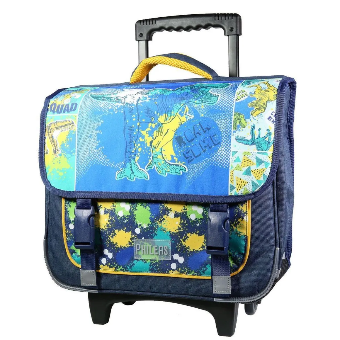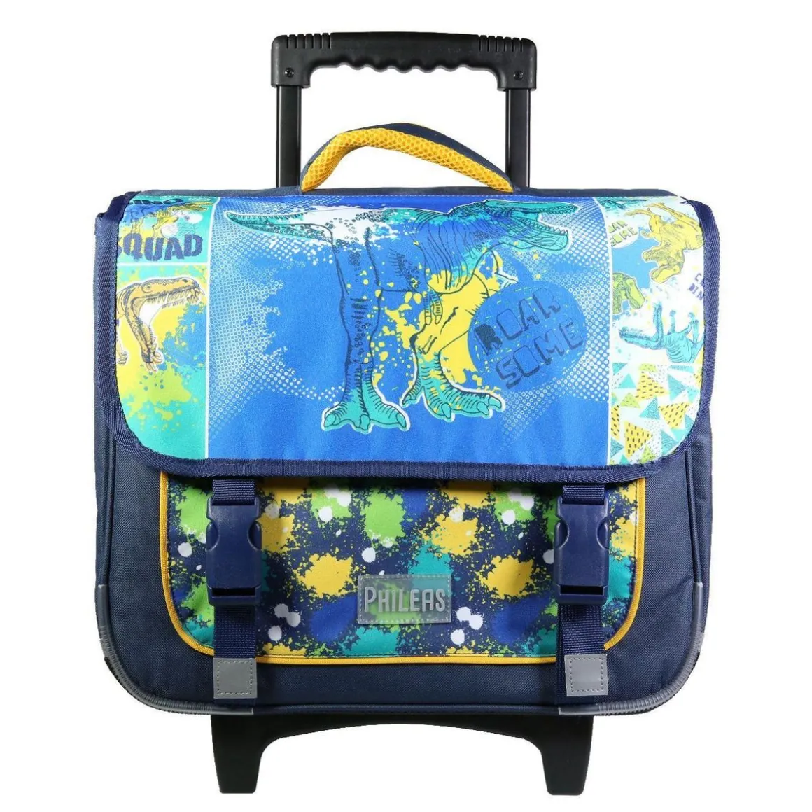 BAGTROTTER Cartable à roulettes 38 cm Phileas Bleu Dinosaure