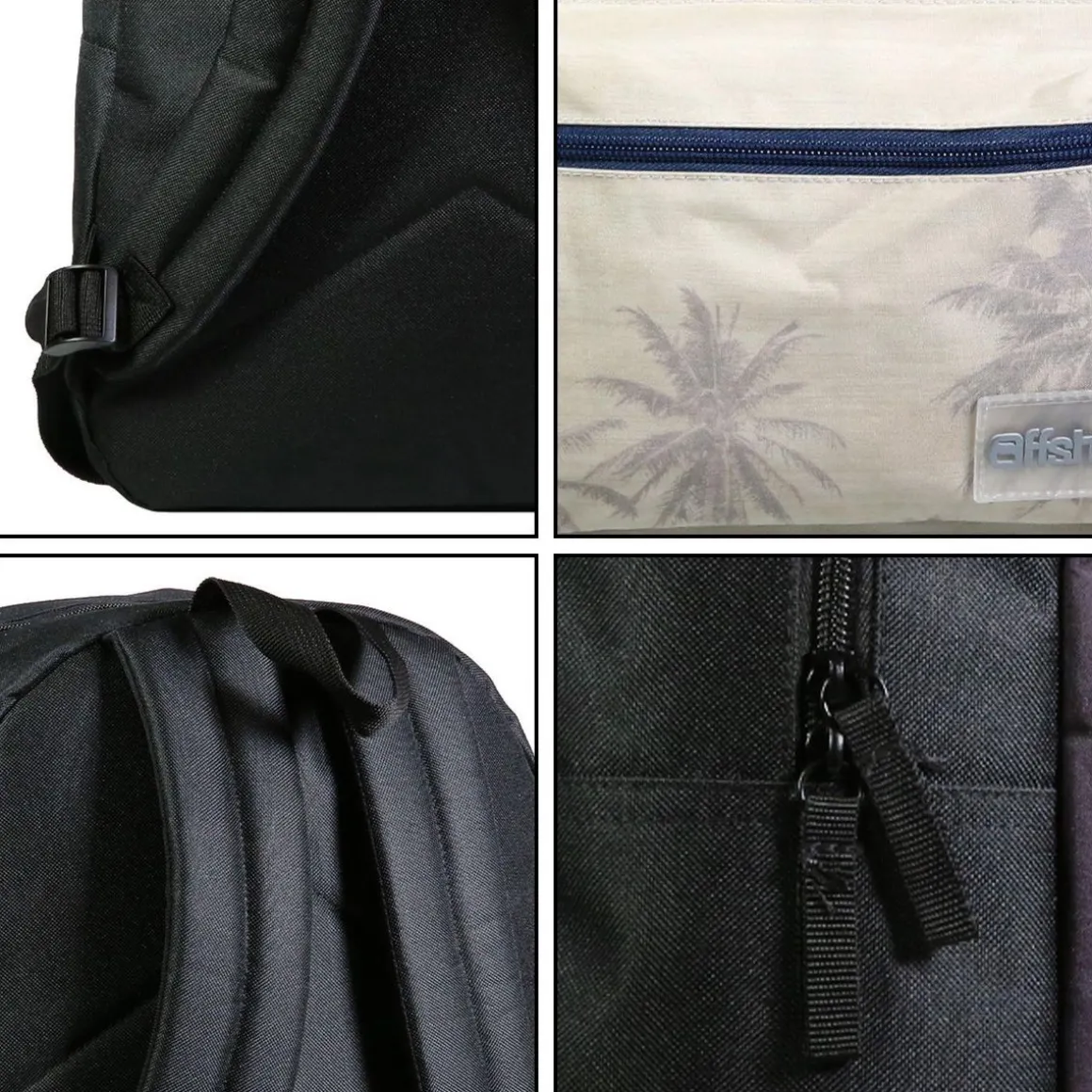 Ce sac à dos multifonction conviendra parfaitement aux altes de primaire et de collège. Celui-ci pourra également être utilisé en sac de loisirs ou sac de sport. Ce sac à dos Offshore 41 cm beige en polyester garantit une solidité absolue grâce à sa matière robuste et durable. Il mesure 29 cm de long, 13 cm de large et 40 cm de haut, pour un poids de 350 grammes. Ergonomique, ce produit dispose d’un compartiment zippé ainsi que d’une poche avant zippée. Un joli sac c’est bien, un joli sac confortable c’est mieux ! C’est pourquoi nous avons équipé ce produit de bretelles et d’un dos matelassés. Les bretelles sont également ajustables à la taille de son porteur. Il y a comme un air de vacances par ici ! Ce sac à dos beige Offshore garanti 2 ans ravira les rois de la glisse avec ses planches de surf et ses superbes palmiers.