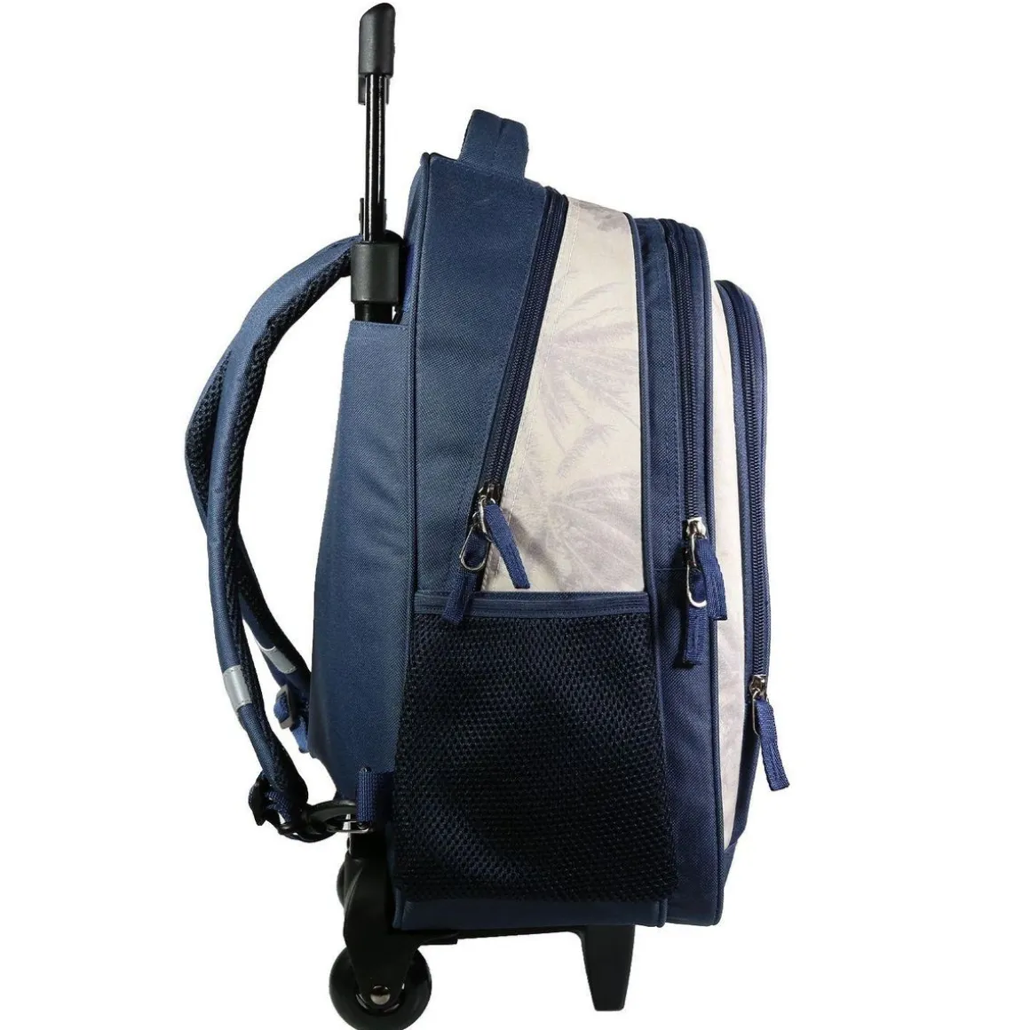 Avec Bagtrotter, les années scolaires de votre enfant en primaire promettent d’être studieuses ! Ce sac à dos à roulettes 45 cm Offshore beige en polyester est hyper résistant grâce à sa matière et son fond renforcé. Votre enfant conservera son sac à dos pendant des années !Il mesure 33 cm de long, 16 cm de large et 45 cm de haut, pour un poids de 850 grammes. Il n’aura aucun mal à ranger ses fournitures scolaires avec ses deux compartiments zippés. Une poche au dos permet à votre enfant de ranger ses bretelles pour éviter leur usure lorsque le sac roule.Nous avons équipé ce produit d’un dos et de bretelles matelassés. Il aura également le choix de le tracter grâce à sa poignée et ses doubles roulettes. Pour un maximum de sécurité, des bandes réfléchissantes sont apposées sur les bretelles ajustables. Ce sac à dos à roulettes beige Offshore garanti 2 ans ravira les rois de la glisse avec ses planches de surf et ses superbes palmiers.