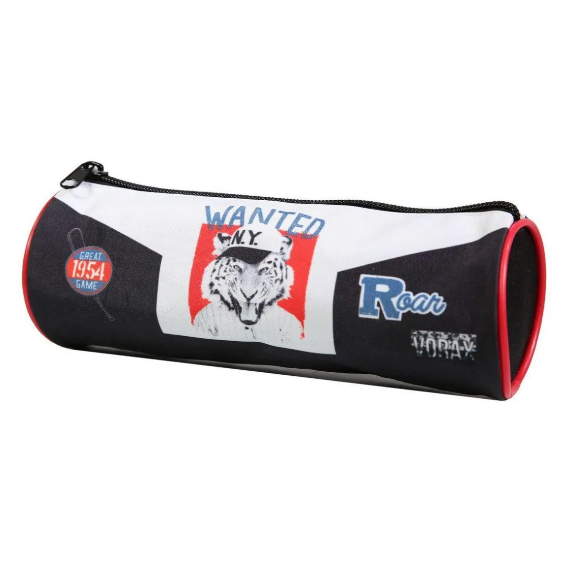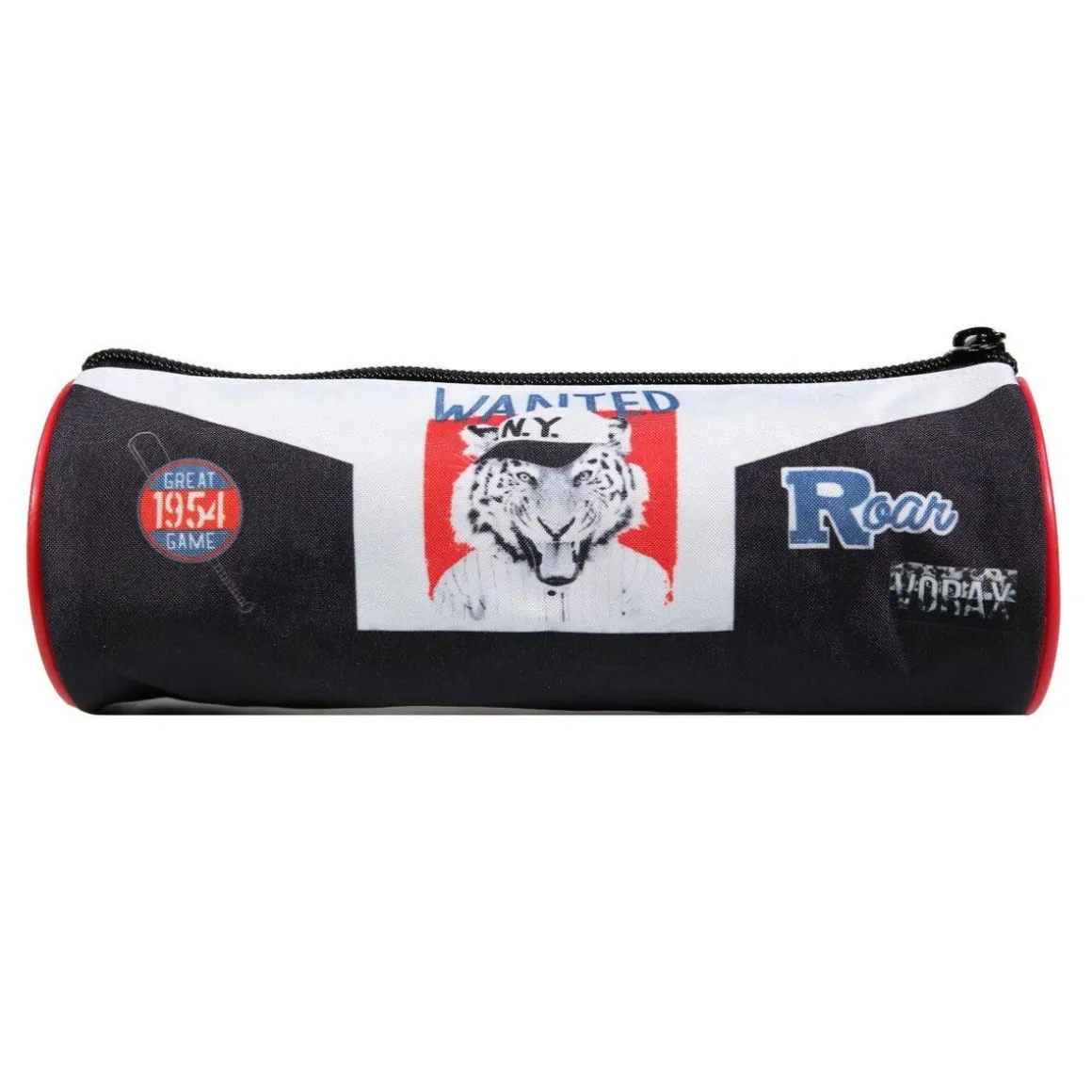 BAGTROTTER Trousse scolaire ronde Vorax Noire Tigre