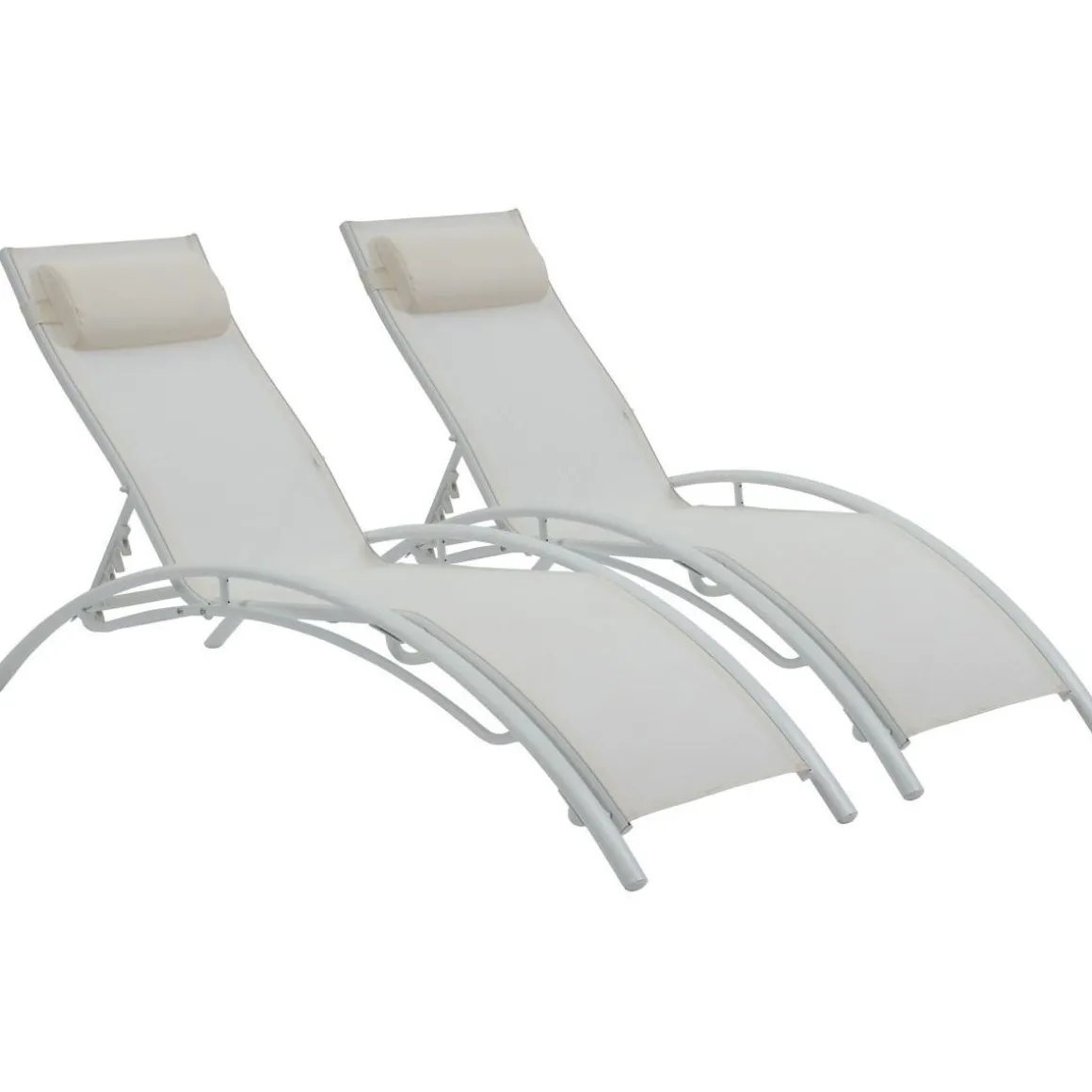 Osez les couleurs Le design moderne des bains de soleil Beauty est très tendances. Les nombreux coloris disponibles vous proposent un large choix pour personnaliser votre jardin et lui donner une décoration qui vous ressemble. Ecru, taupe, vert, bleu, rose et d’autres couleurs encore sont disponibles pour un design unique et tendance. Descriptif : – Lot de 2 bains de soleil – Structure en aluminium – Siège en textilène – Dimensions dossier : 46 x 80 cm – Dimensions assise : 47 x 101 cm – Dossier inclinable – 4 positions possibles – Plusieurs coloris disponibles.